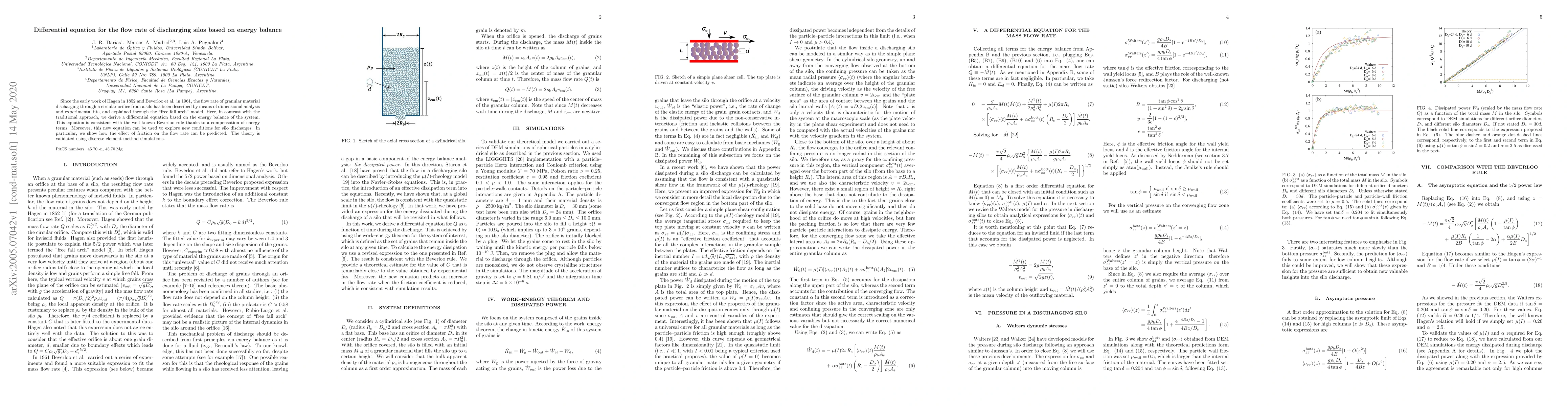 This paper derives a novel differential equation for the flow rate of silo discharge based on energy balance, which aligns with the Beverloo rule and predicts the effect of friction. The theory is validated through discrete element method simulations.
