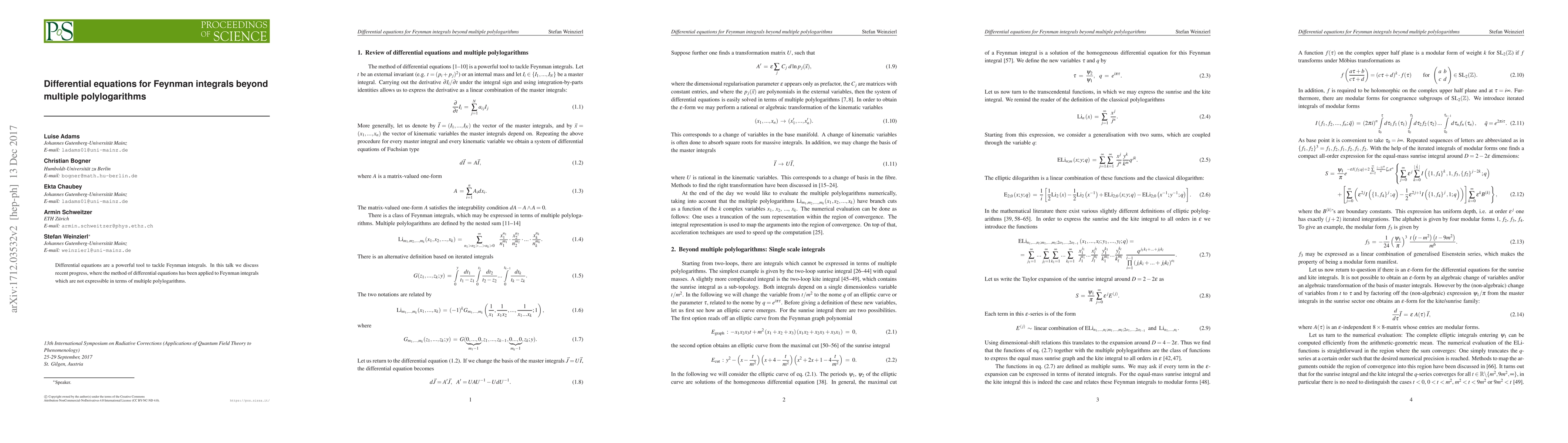 Summary: This paper explores the application of differential equations to Feynman integrals that extend beyond multiple polylogarithms, showcasing recent advancements in this mathematical approach.