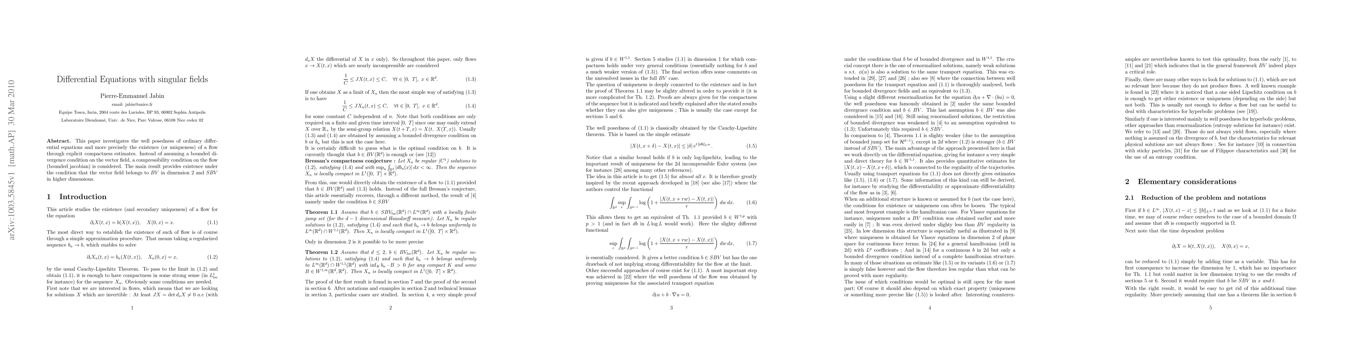 This paper investigates existence of flows in differential equations with singular fields under compressibility conditions, showing existence for BV vector fields in 2D and SBV in higher dimensions.