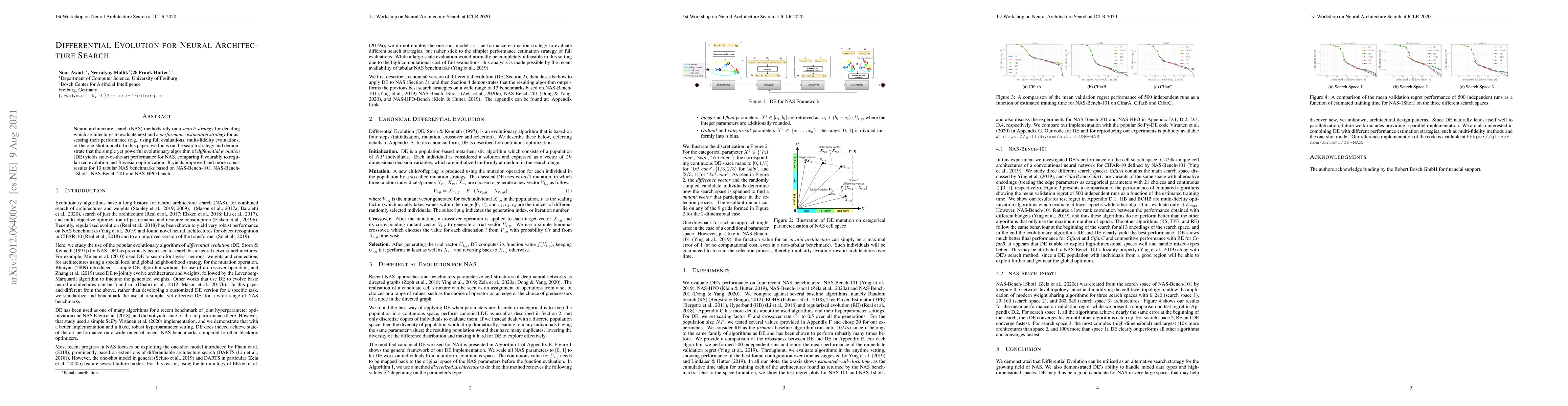 This paper introduces differential evolution as a search strategy for neural architecture search (NAS), comparing it to regularized evolution and Bayesian optimization. The results show that differential evolution yields improved and more robust performance across 13 tabular NAS benchmarks.