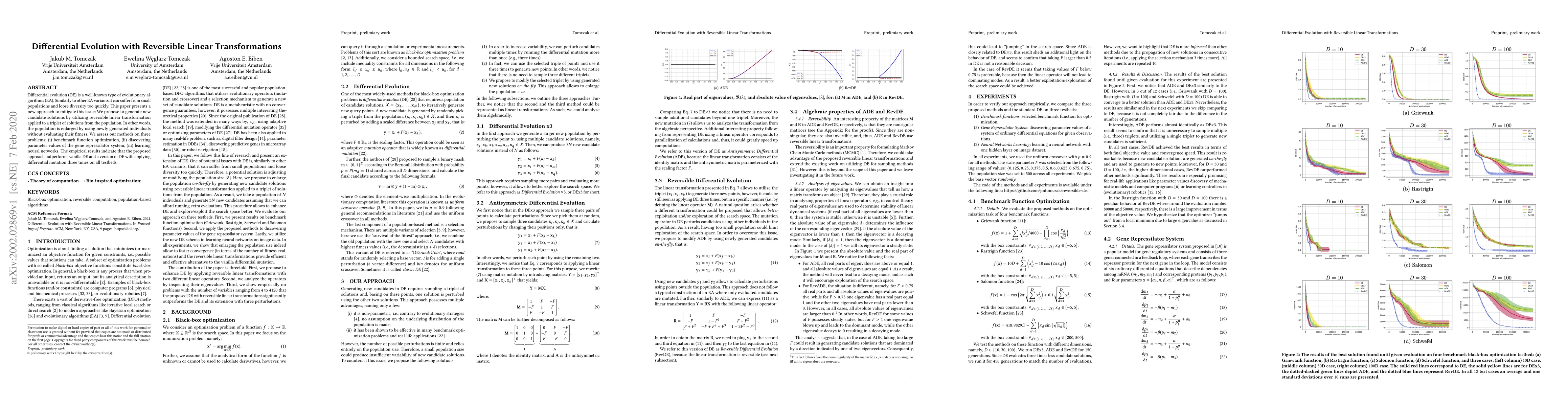 Differential evolution (DE) is a well-known type of evolutionary algorithms (EA). Similarly to other EA variants it can suffer from small populations and loose diversity too quickly. This paper presents a new approach to mitigate this issue: We propose to generate new candidate solutions by utilizing reversible linear transformation applied to a triplet of solutions from the population. In other words, the population is enlarged by using newly generated individuals without evaluating their fitness. We assess our methods on three problems: (i) benchmark function optimization, (ii) discovering parameter values of the gene repressilator system, (iii) learning neural networks. The empirical results indicate that the proposed approach outperforms vanilla DE and a version of DE with applying differential mutation three times on all testbeds.
