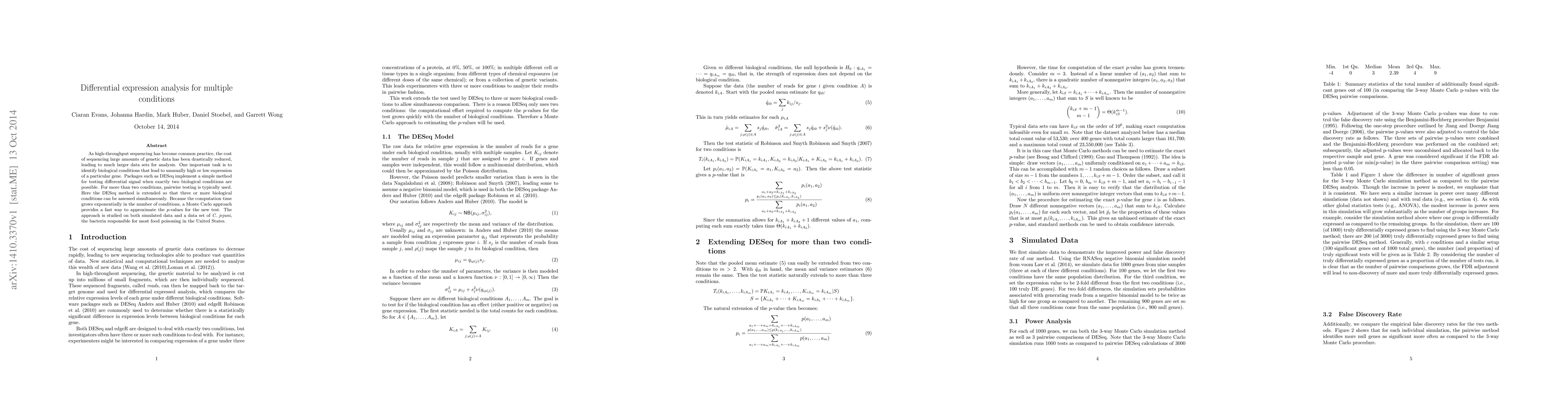 This paper extends the DESeq method to analyze differential gene expression across three or more biological conditions using a Monte Carlo approach to manage computational complexity. The method is tested on both simulated data and a dataset from {\em C. jejuni}, demonstrating its effectiveness in identifying genes with unusual expression levels under multiple conditions.