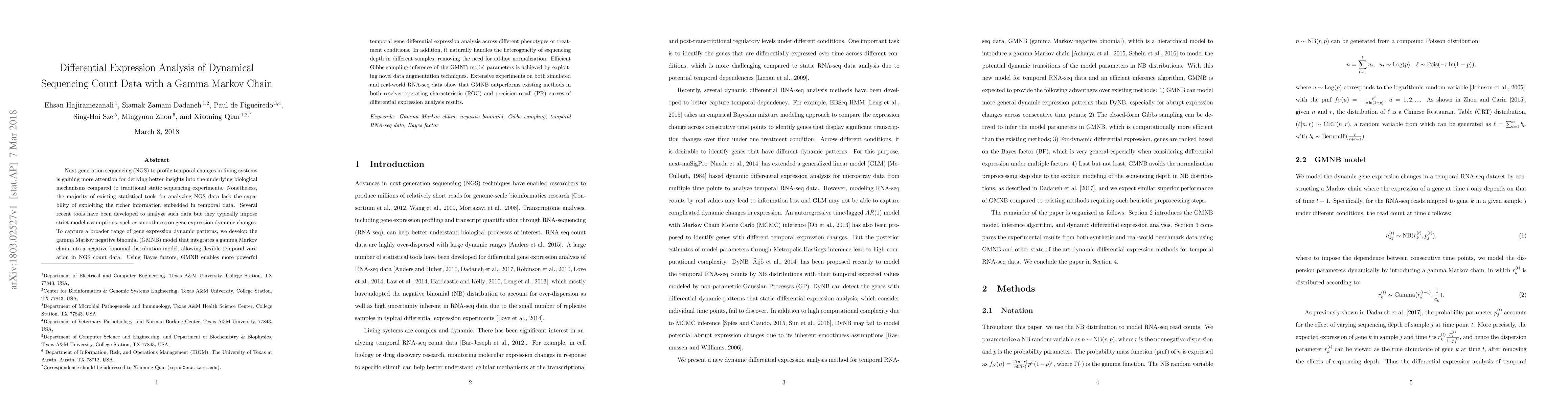 This paper introduces a gamma Markov negative binomial (GMNB) model for analyzing next-generation sequencing data to capture temporal gene expression dynamics. The GMNB model, which integrates a gamma Markov chain with a negative binomial distribution, provides a flexible approach for temporal differential expression analysis, outperforming existing methods in ROC and PR metrics.