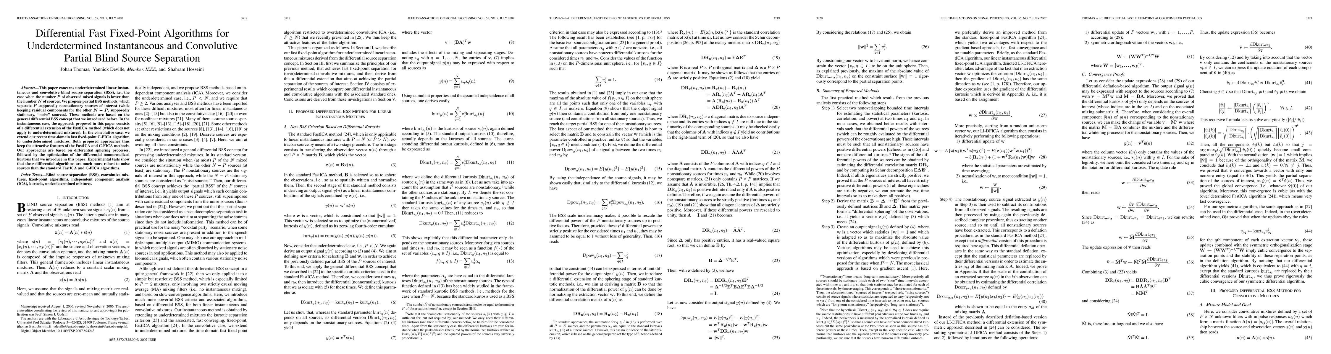 This paper proposes differential fast fixed-point algorithms for underdetermined instantaneous and convolutive partial blind source separation, enhancing robustness to noise. The methods extend the FastICA and C-FICA algorithms for underdetermined mixtures, optimizing differential nonnormalized kurtosis.
