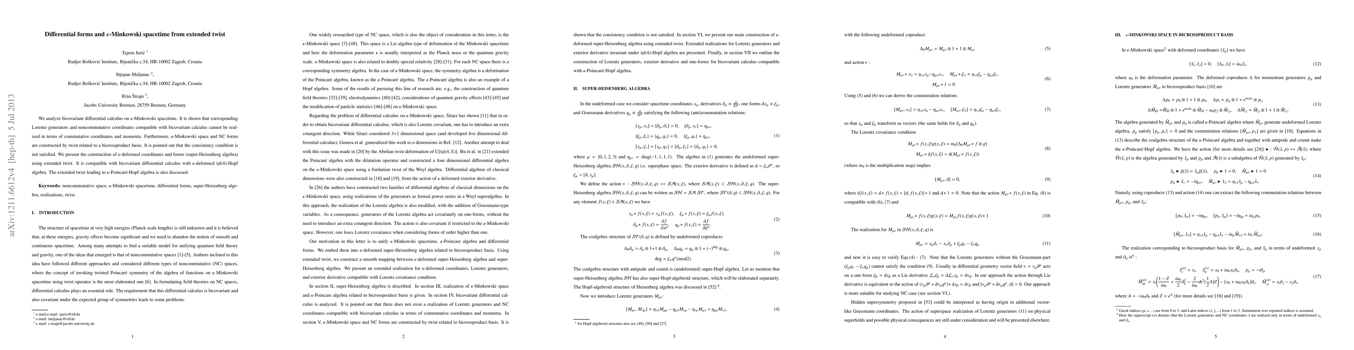 We analyze bicovariant differential calculus on $\kappa$-Minkowski spacetime. It is shown that corresponding Lorentz generators and noncommutative coordinates compatible with bicovariant calculus cannot be realized in terms of commutative coordinates and momenta. Furthermore, $\kappa$-Minkowski space and NC forms are constructed by twist related to a bicrossproduct basis. It is pointed out that the consistency condition is not satisfied. We present the construction of $\kappa$-deformed coordinates and forms (super-Heisenberg algebra) using extended twist. It is compatible with bicovariant differential calculus with $\kappa$-deformed $\mathfrak{igl}(4)$-Hopf algebra. The extended twist leading to $\kappa$-Poincar\'{e}-Hopf algebra is also discussed.