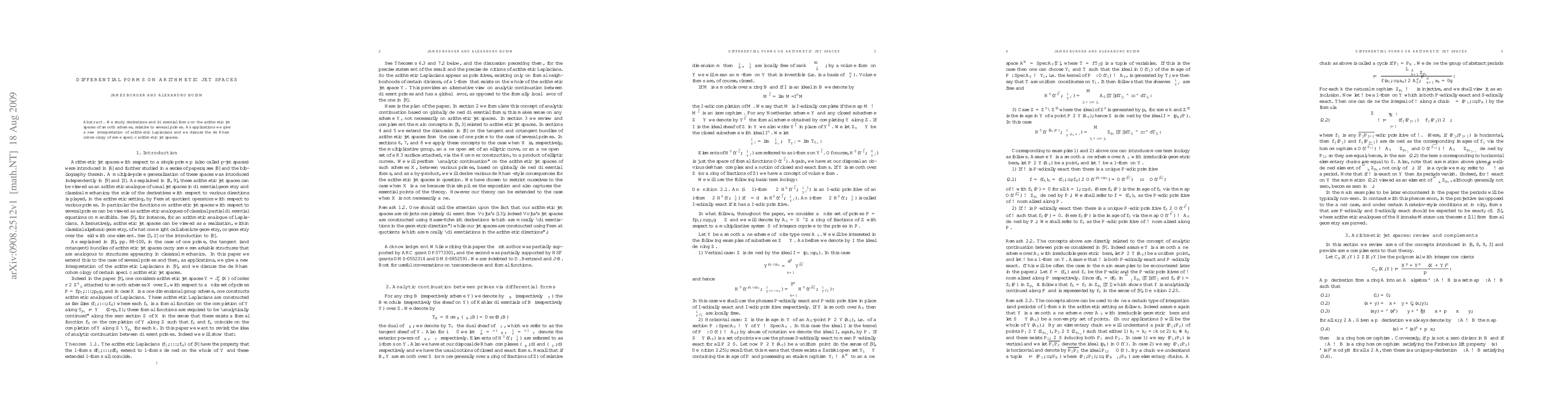 Summary: This paper investigates derivations and differential forms on arithmetic jet spaces of smooth schemes, providing a new perspective on arithmetic Laplacians and exploring the de Rham cohomology of certain arithmetic jet spaces.