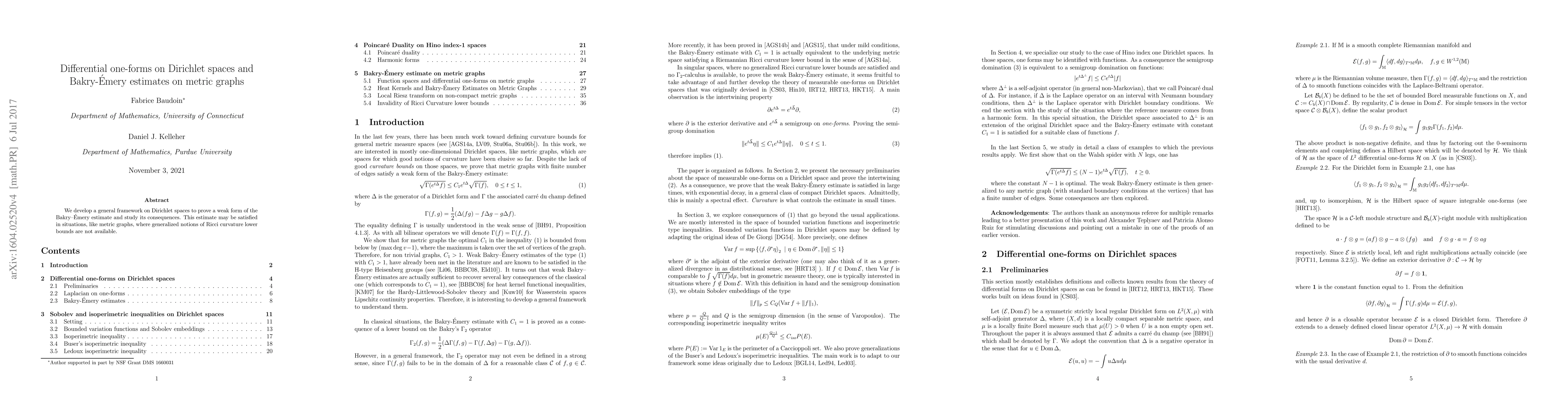 This paper develops a framework for proving a weak form of the Bakry-Emery estimate on Dirichlet spaces, which can be applied to metric graphs where other curvature bounds are not available.