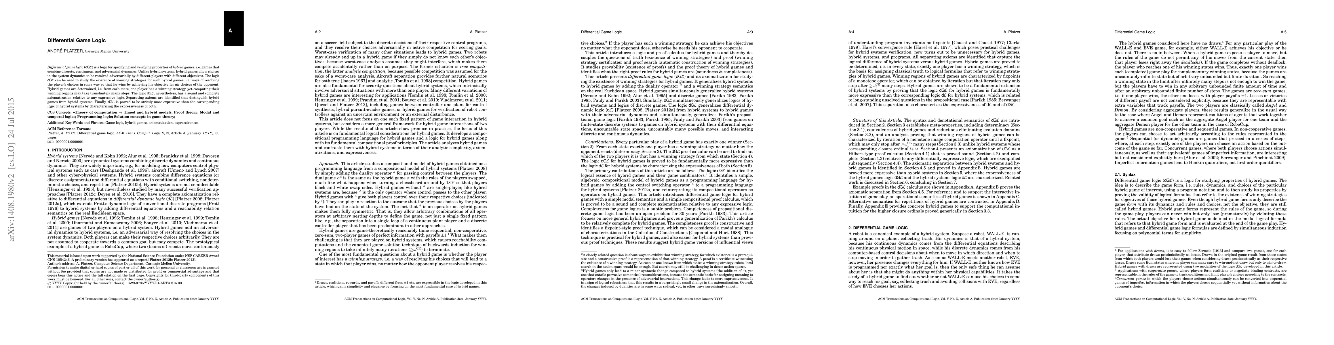 Researchers develop a logic called differential game logic (dGL) to study hybrid games with discrete, continuous, and adversarial dynamics. dGL provides a sound and complete axiomatization for studying winning strategies in these complex systems.