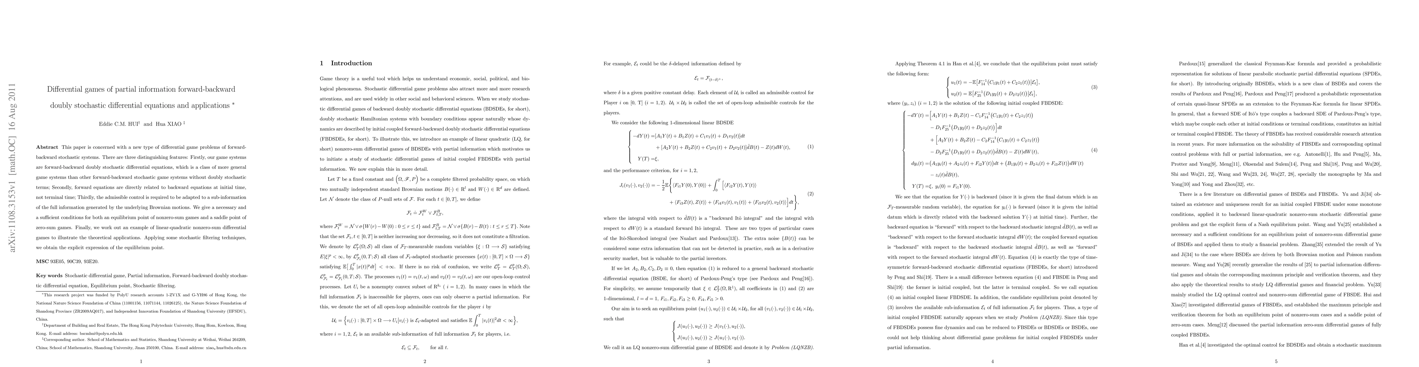 This paper is concerned with a new type of differential game problems of forwardbackward stochastic systems. There are three distinguishing features: Firstly, our game systems are forward-backward doubly stochastic differential equations, which is a class of more general game systems than other forward-backward stochastic game systems without doubly stochastic terms; Secondly, forward equations are directly related to backward equations at initial time, not terminal time; Thirdly, the admissible control is required to be adapted to a sub-information of the full information generated by the underlying Brownian motions. We give a necessary and a sufficient conditions for both an equilibrium point of nonzero-sum games and a saddle point of zero-sum games. Finally, we work out an example of linear-quadratic nonzero-sum differential games to illustrate the theoretical applications. Applying some stochastic filtering techniques, we obtain the explicit expression of the equilibrium point.