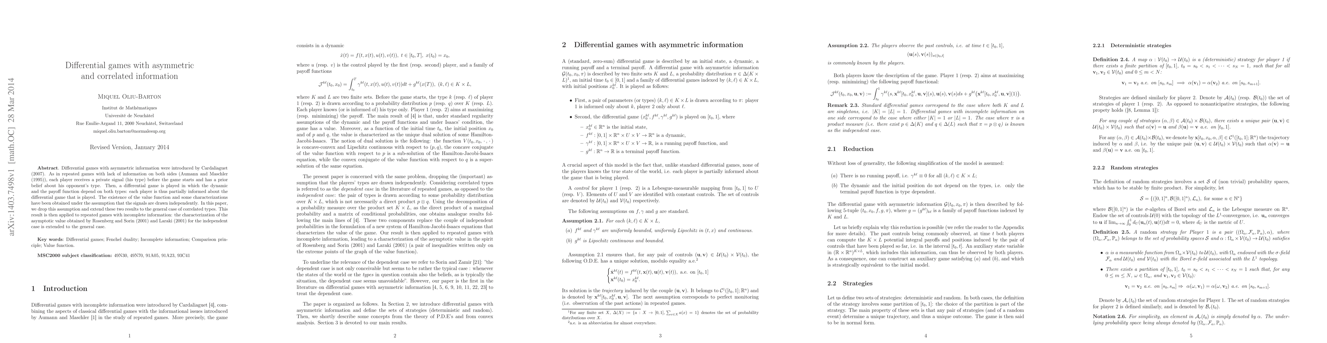 Differential games with asymmetric information were introduced by Cardaliaguet (2007). As in repeated games with lack of information on both sides (Aumann and Maschler (1995)), each player receives a private signal (his type) before the game starts and has a prior belief about his opponent's type. Then, a differential game is played in which the dynamic and the payoff function depend on both types: each player is thus partially informed about the differential game that is played. The existence of the value function and some characterizations have been obtained under the assumption that the signals are drawn independently. In this paper, we drop this assumption and extend these two results to the general case of correlated types. This result is then applied to repeated games with incomplete information: the characterization of the asymptotic value obtained by Rosenberg and Sorin (2001) and Laraki (2001) for the independent case is extended to the general case.