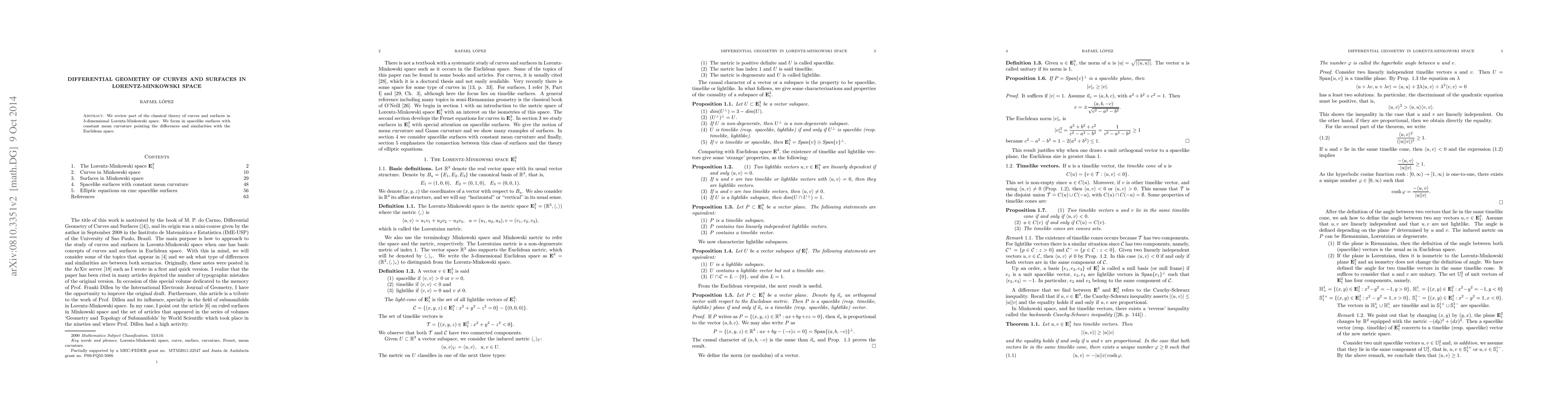 We review part of the classical theory of curves and surfaces in $3$-dimensional Lorentz-Minkowski space. We focus in spacelike surfaces with constant mean curvature pointing the differences and similarities with the Euclidean space.