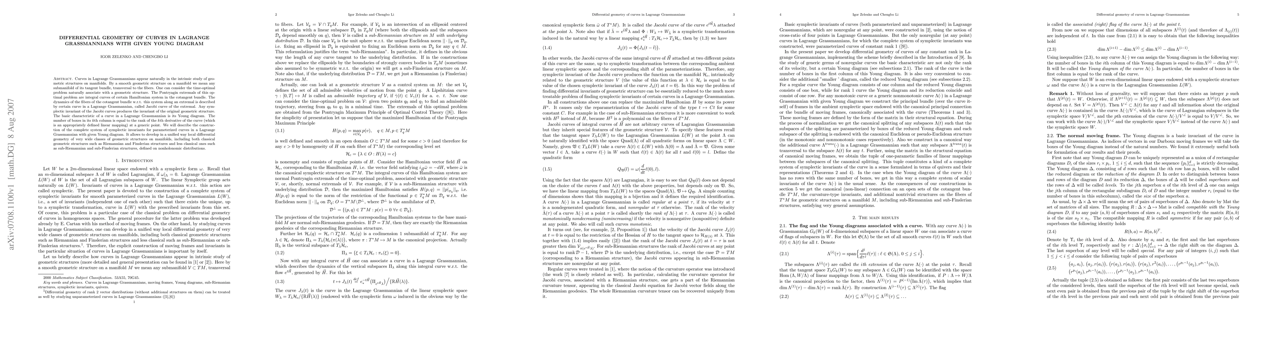 Curves in Lagrange Grassmannians appear naturally in the intrinsic study of geometric structures on manifolds. By a smooth geometric structure on a manifold we mean any submanifold of its tangent bundle, transversal to the fibers. One can consider the time-optimal problem naturally associate with a geometric structure. The Pontryagin extremals of this optimal problem are integral curves of certain Hamiltonian system in the cotangent bundle. The dynamics of the fibers of the cotangent bundle w.r.t. this system along an extremal is described by certain curve in a Lagrange Grassmannian, called Jacobi curve of the extremal. Any symplectic invariant of the Jacobi curves produces the invariant of the original geometric structure. The basic characteristic of a curve in a Lagrange Grassmannian is its Young diagram. The number of boxes in its kth column is equal to the rank of the kth derivative of the curve (which is an appropriately defined linear mapping) at a generic point. We will describe the construction of the complete system of symplectic invariants for parameterized curves in a Lagrange Grassmannian with given Young diagram. It allows to develop in a unified way local differential geometry of very wide classes of geometric structures on manifolds, including both classical geometric structures such as Riemannian and Finslerian structures and less classical ones such as sub-Riemannian and sub-Finslerian structures, defined on nonholonomic distributions.