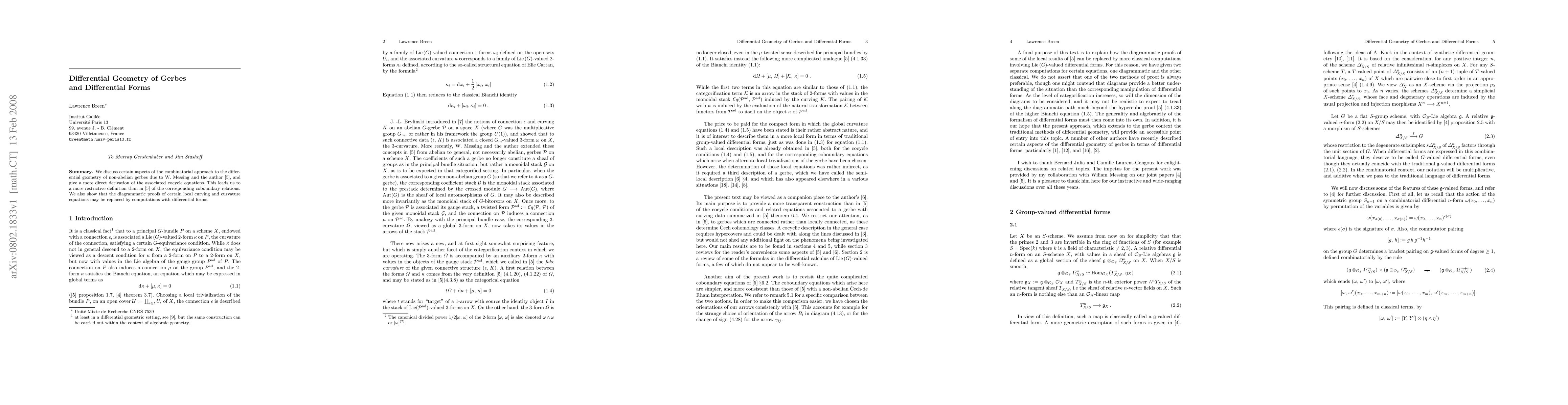 We discuss certain aspects of the combinatorial approach to the differential geometry of non-abelian gerbes, due to W. Messing and the author (arXiv:math.AG/0106083), and give a more direct derivation of the associated cocycle equations. This leads us to a more restrictive definition of the corresponding coboundary relations. We also show that the diagrammatic proofs of certain local curving and curvature equations may be replaced by computations with differential forms.