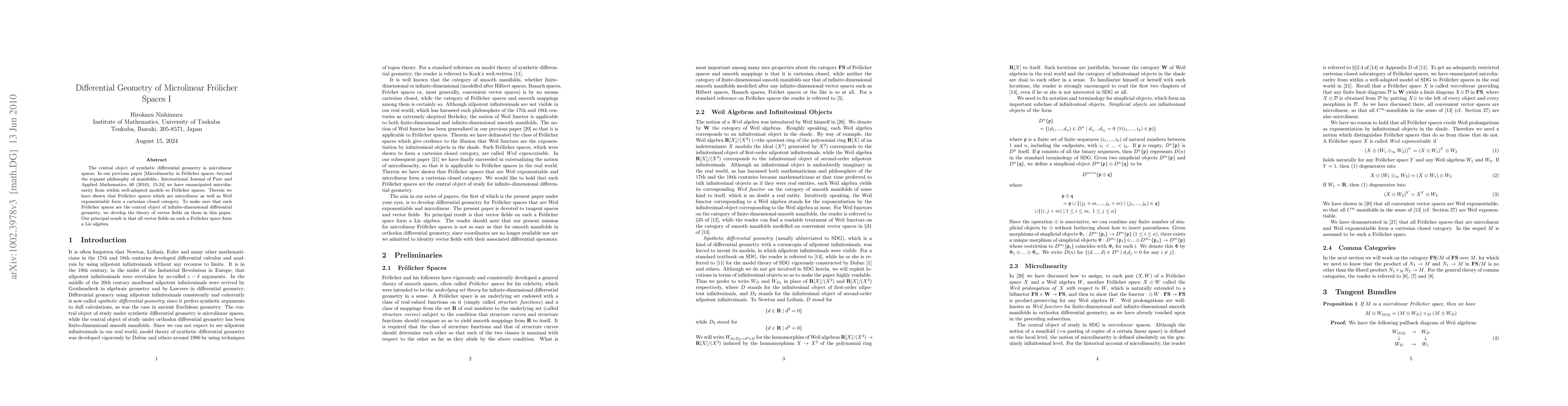 This paper extends the theory of microlinear spaces within the framework of Frolicher spaces, demonstrating that Frolicher spaces that are both microlinear and Weil exponentiable form a cartesian closed category. The key result is that vector fields on these spaces constitute a Lie algebra, reinforcing their role in the geometry of infinite-dimensional differential spaces.