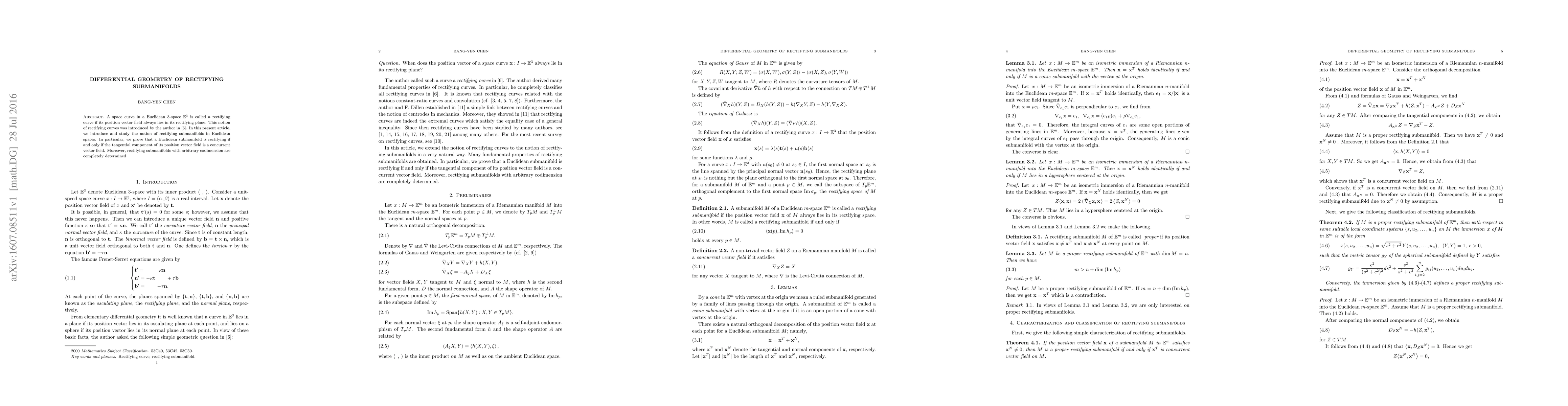 This paper introduces rectifying submanifolds in Euclidean spaces, demonstrating that a submanifold is rectifying if its tangential position vector field is concurrent. It also determines rectifying submanifolds of any codimension completely.