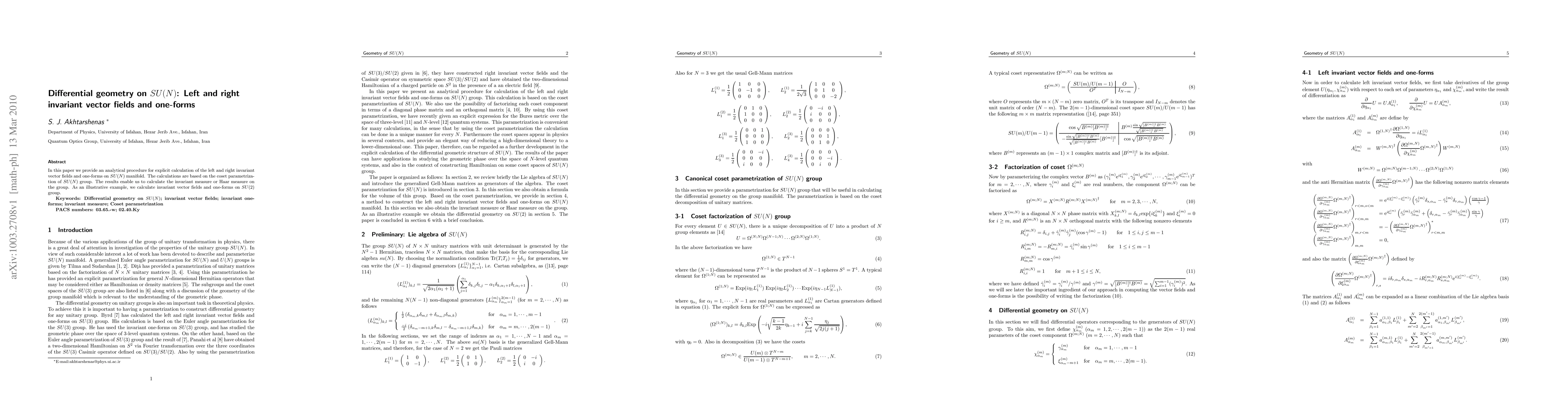 This paper provides an analytical method for calculating left and right invariant vector fields and one-forms on SU(N) manifold, enabling the calculation of the group's Haar measure.