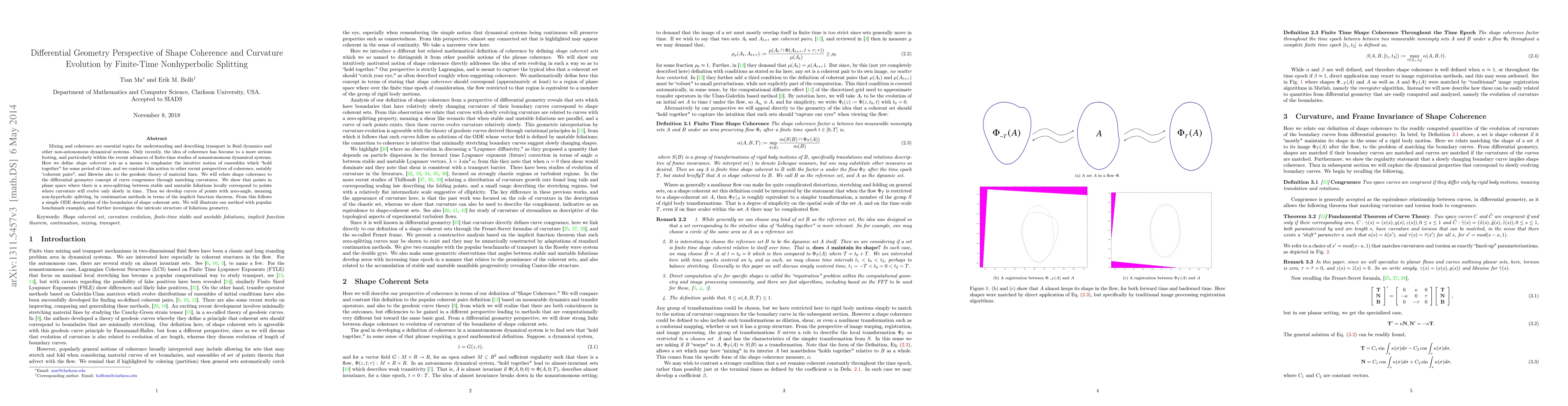 Mixing, and coherence are fundamental issues at the heart of understanding transport in fluid dynamics and other non-autonomous dynamical systems. Recently, the notion of coherence has come to a more rigorous footing, and particularly within the recent advances of finite-time studies of non-autonomous dynamical systems. Here we define shape coherent sets as a means to emphasize the intuitive notion of ensembles which "hold together" for some period of time, and we contrast this notion to other recent perspectives of coherence, notably "coherent pairs", and likewise also to the geodesic theory of material lines. We will relate shape coherence to the differential geometry concept of curve congruence through matching curvatures. We show that points in phase space where there is a zero-splitting between stable and unstable manifolds locally correspond to points where curvature will evolve only slowly in time. Then we develop curves of points with zero-angle, meaning non-hyperbolic splitting, by continuation methods in terms of the implicit function theorem. From this follows a simple ODE description of the boundaries of shape coherent sets. We will illustrate our methods with popular benchmark examples, and further investigate the intricate structure of foliations geometry.