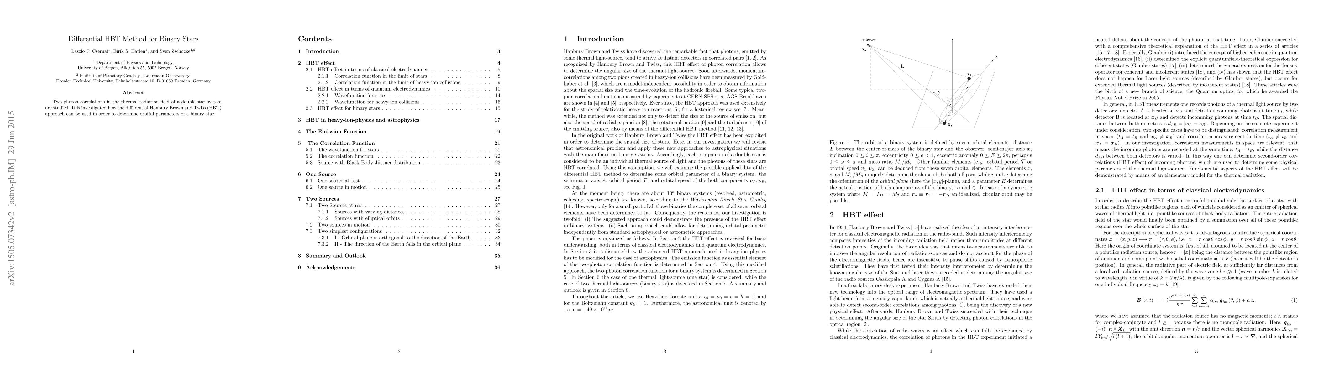 Two photon correlations are studied for a binary star system. It is investigated how the differential Hanbury Brown and Twiss (HBT) approach can be used in order to determine orbital parameters of a binary star.