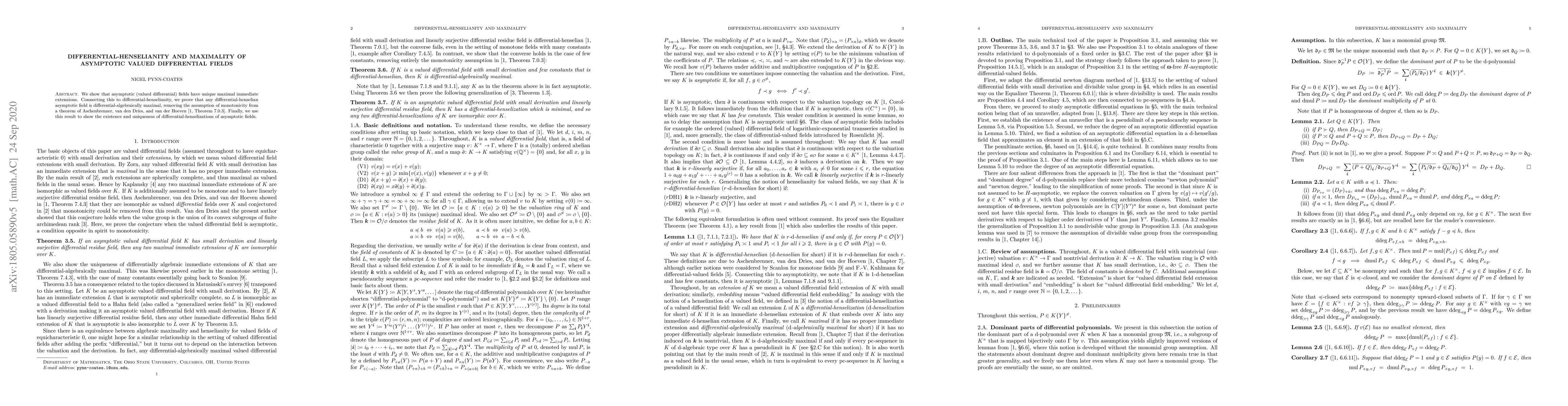 This paper demonstrates that asymptotic valued differential fields possess unique maximal immediate extensions and establishes that differential-henselian asymptotic fields are differential-algebraically maximal, thereby generalizing a prior theorem by removing the monotonicity assumption. It also proves the existence and uniqueness of differential-henselizations for these fields.