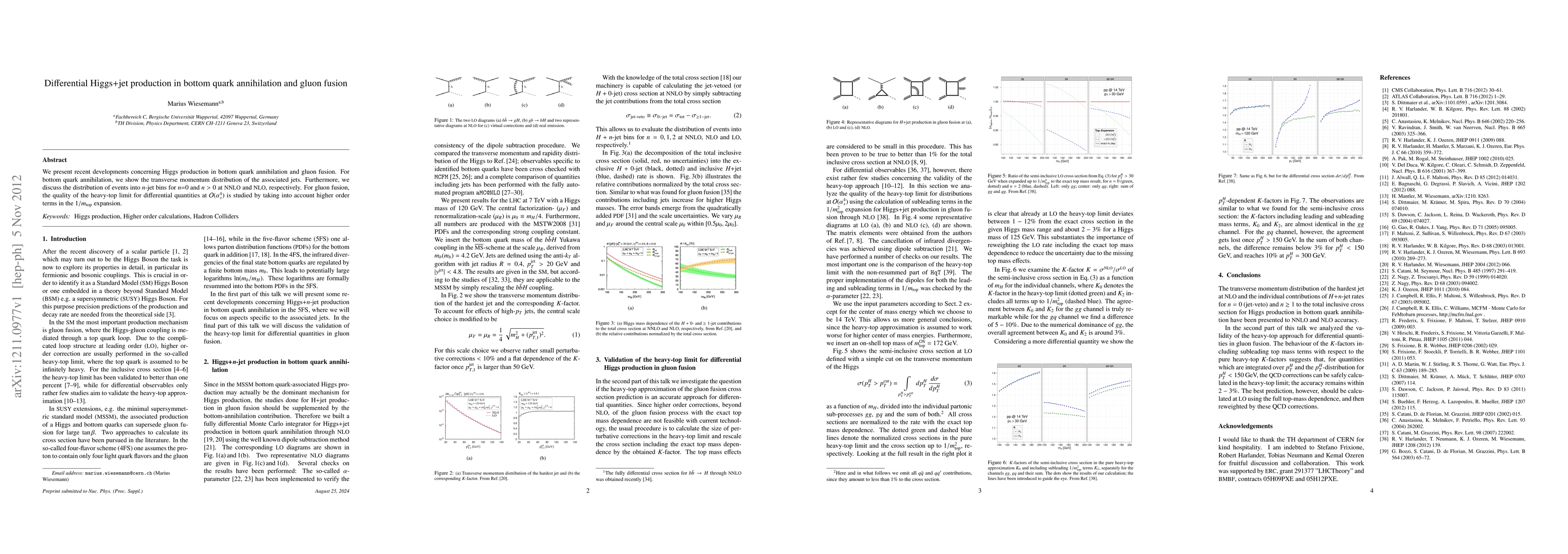 This paper investigates differential Higgs+jet production in bottom quark annihilation and gluon fusion, detailing the transverse momentum distribution of associated jets in bottom quark processes and the event distribution into n-jet bins. It also examines the quality of the heavy-top limit for gluon fusion at higher order terms.