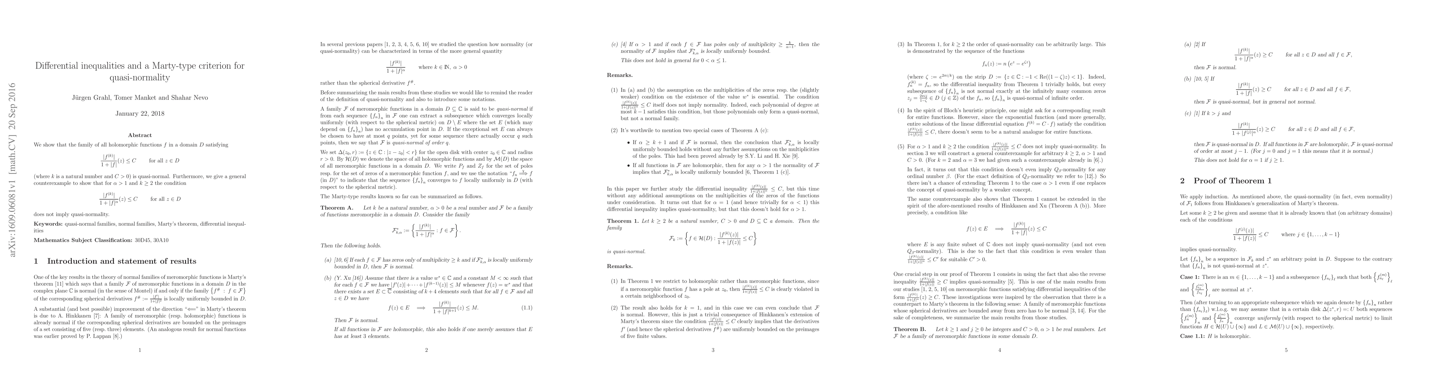 We show that the family of all holomorphic functions $f$ in a domain $D$ satisfying $$\frac{|f^{(k)}|}{1+|f|}(z)\le C \qquad \mbox{ for all } z\in D$$ (where $k$ is a natural number and $C>0$) is quasi-normal. Furthermore, we give a general counterexample to show that for $\alpha>1$ and $k\ge2$ the condition $$\frac{|f^{(k)}|}{1+|f|^\alpha}(z)\le C \qquad \mbox{ for all } z\in D$$ does not imply quasi-normality.