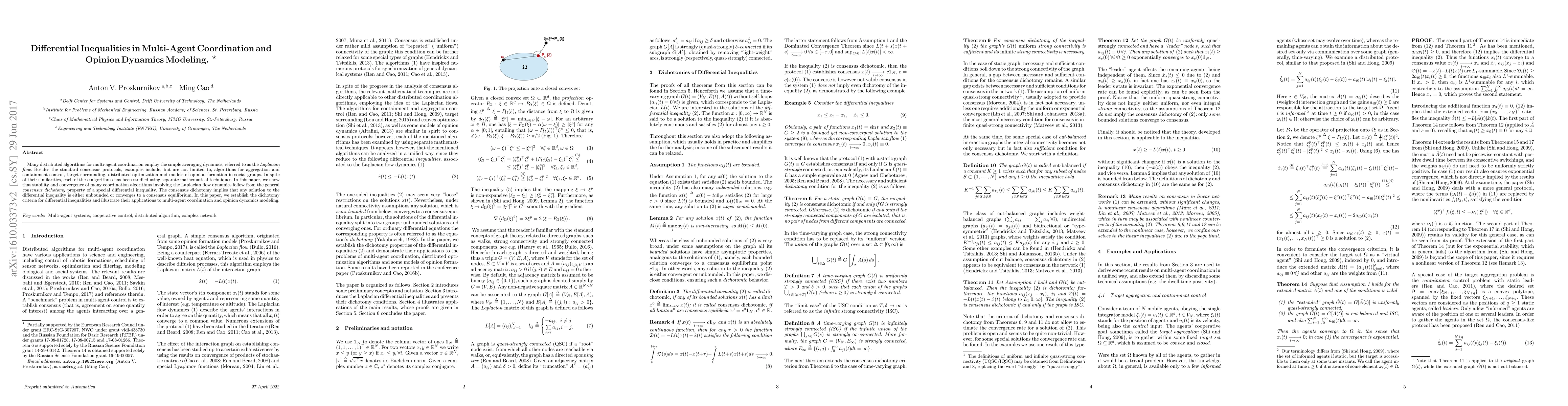 This paper presents a unified approach to analyzing multi-agent coordination algorithms, showing that certain inequalities are crucial for convergence, enabling the extension of recent results on opinion formation in social groups.