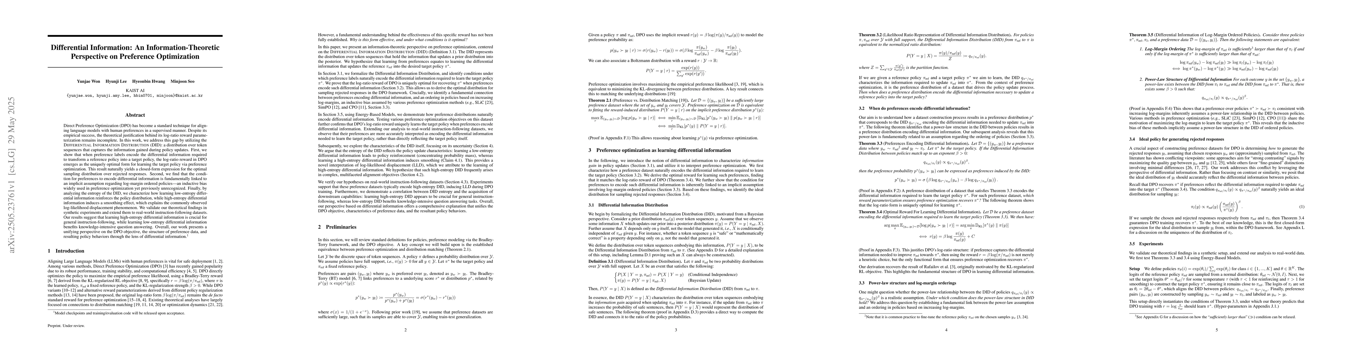 The paper offers an information-theoretic justification for the implicit reward structure in DPO, linking its optimality to the differential information captured by preference data.