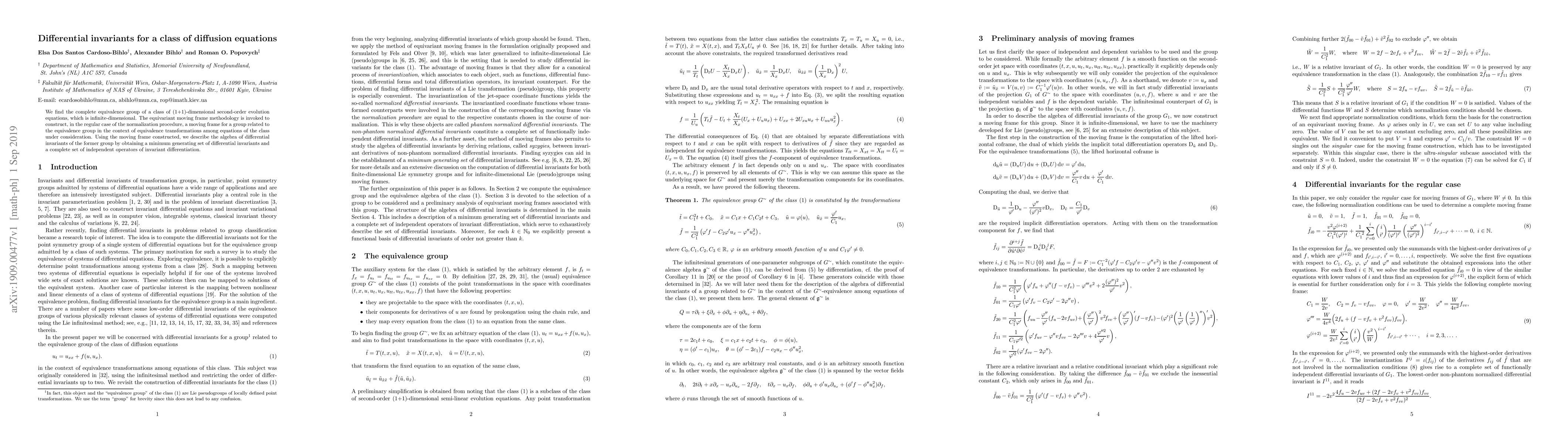 We find the complete equivalence group of a class of (1+1)-dimensional second-order evolution equations, which is infinite-dimensional. The equivariant moving frame methodology is invoked to construct, in the regular case of the normalization procedure, a moving frame for a group related to the equivalence group in the context of equivalence transformations among equations of the class under consideration. Using the moving frame constructed, we describe the algebra of differential invariants of the former group by obtaining a minimum generating set of differential invariants and a complete set of independent operators of invariant differentiation.