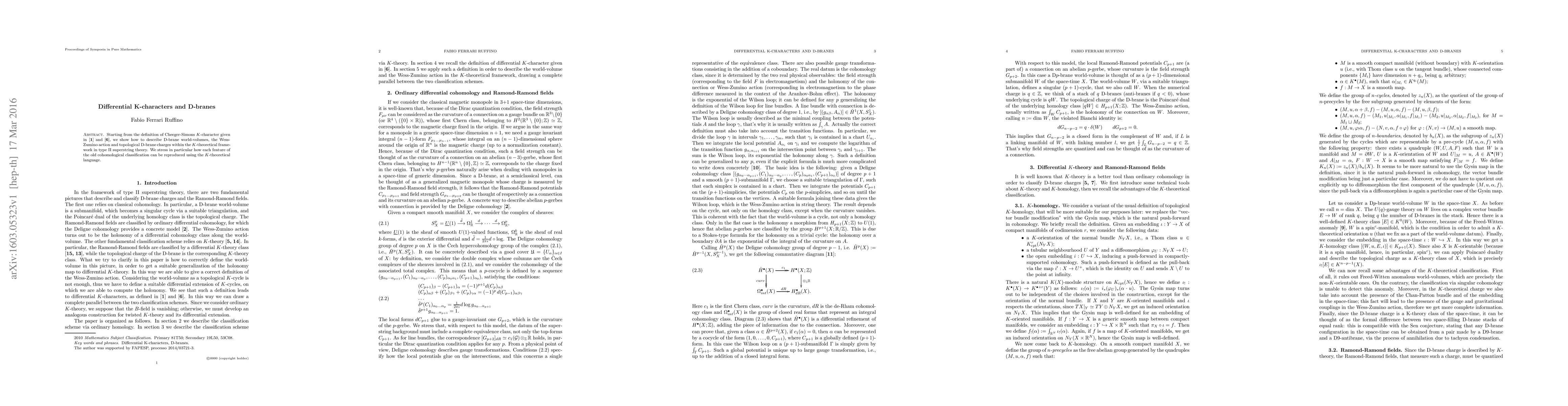 Starting from the definition of Cheeger-Simons K-character, we show how to describe D-brane world-volumes, the Wess-Zumino action and topological D-brane charges within the K-theoretical framework in type II superstring theory. We stress in particular how each feature of the old cohomological classification can be reproduced using the K-theoretical language.