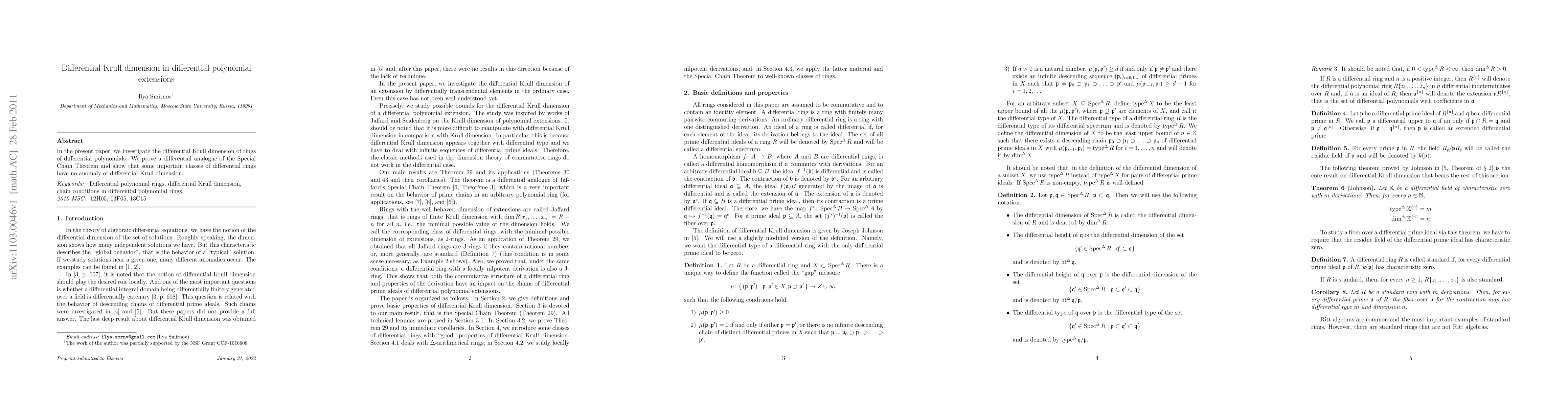 This paper explores the differential Krull dimension in differential polynomial extensions over differential rings, proving a differential analogue of Jaffard's Special Chain Theorem and demonstrating that certain differential polynomial extensions maintain consistent differential Krull dimension without anomalies.