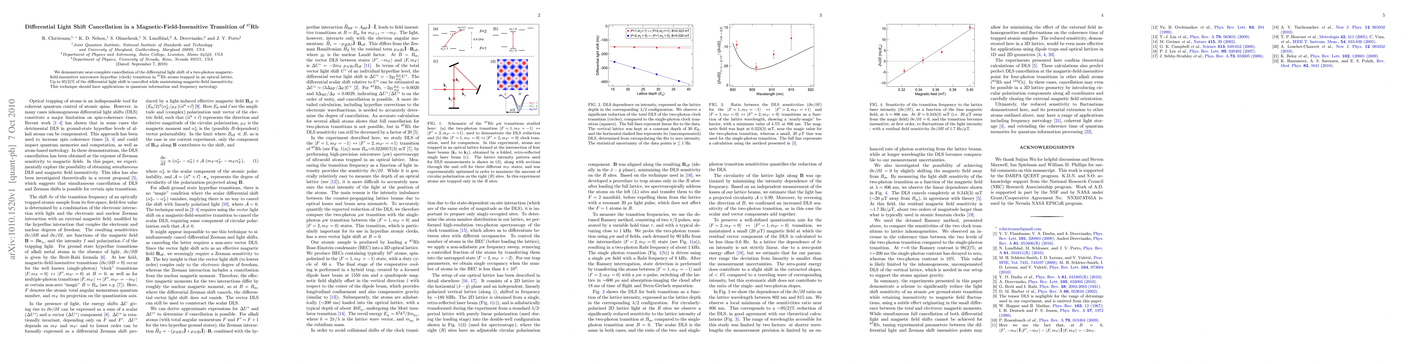 We demonstrate near-complete cancellation of the differential light shift of a two-photon magnetic-field-insensitive microwave hyperfine (clock) transition in $^{87}$Rb atoms trapped in an optical lattice. Up to $95(2)%$ of the differential light shift is canceled while maintaining magnetic-field insensitivity. This technique should have applications in quantum information and frequency metrology.