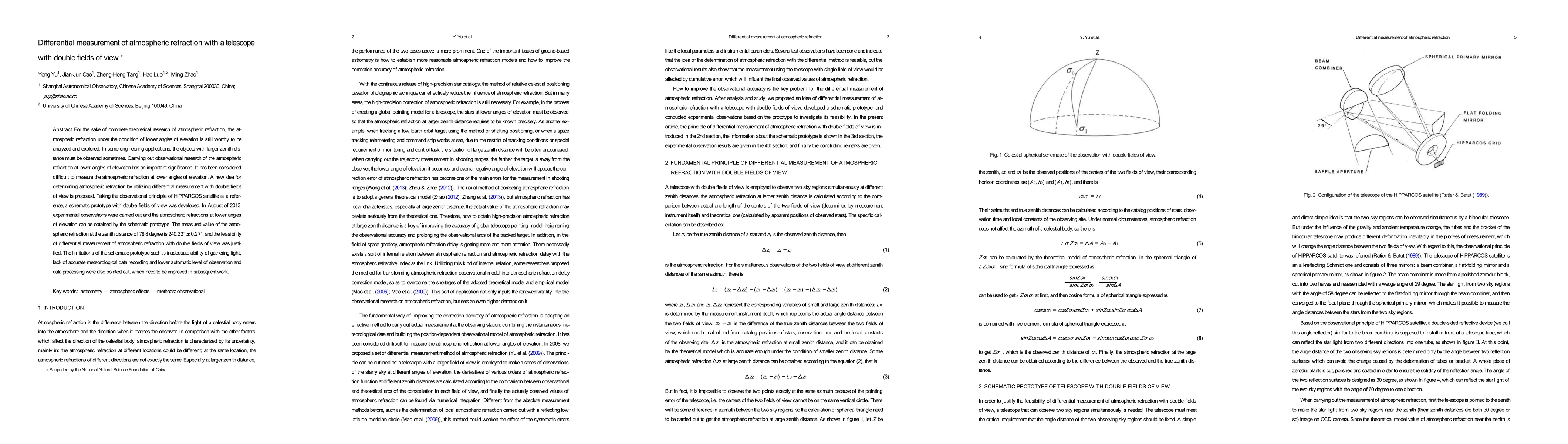 Researchers developed a new method to measure atmospheric refraction at lower angles of elevation using differential measurement with double fields of view, justifying its feasibility and obtaining measurable results.