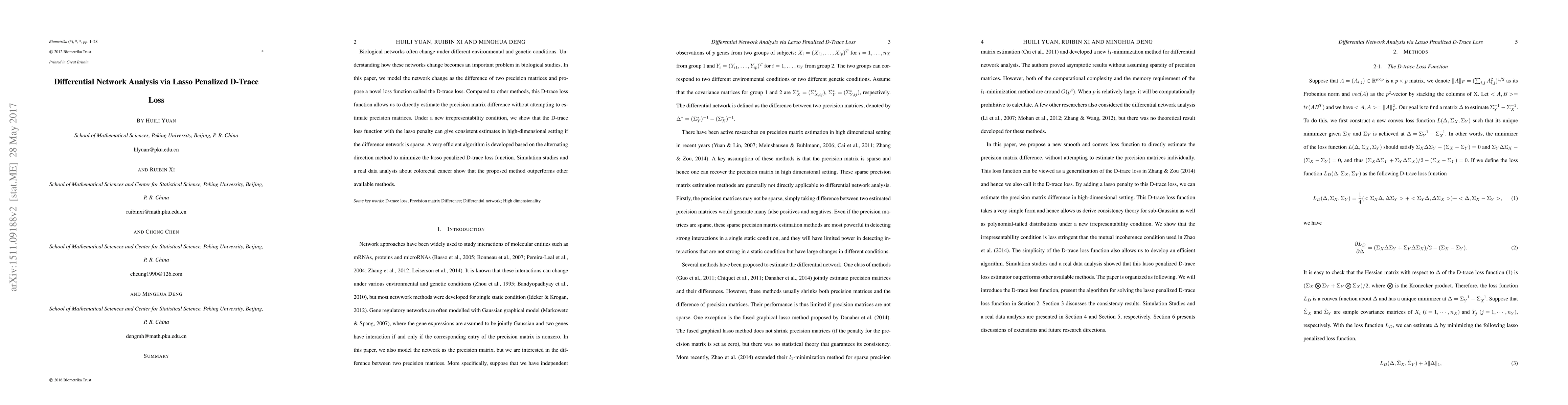 This paper proposes a novel method to analyze changes in biological networks under different conditions using a lasso penalized loss function, which provides consistent estimates even in high-dimensional settings.