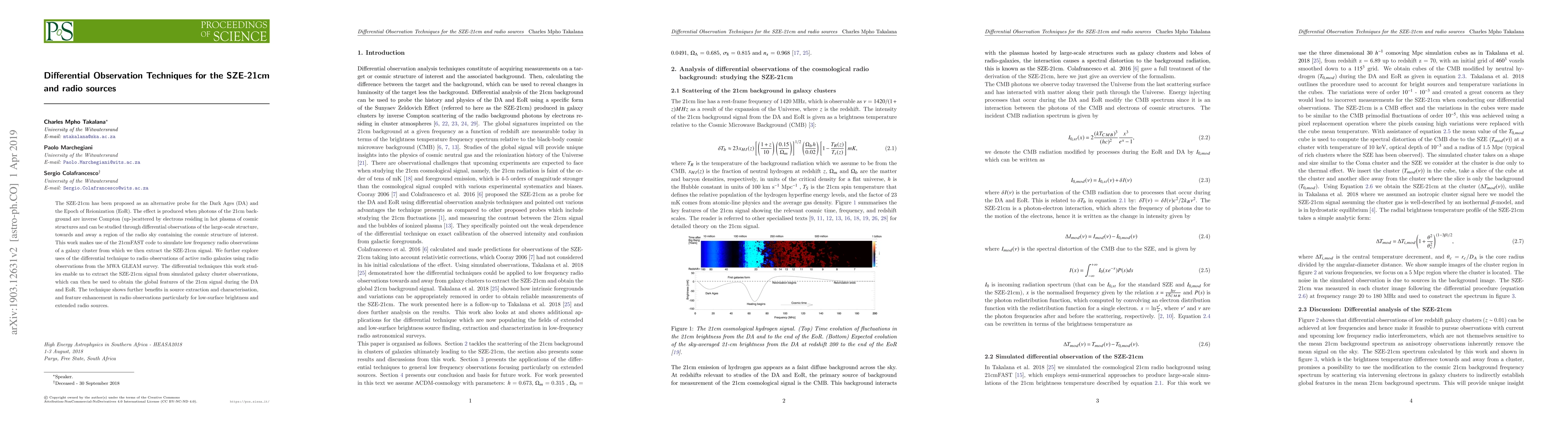 The SZE-21cm has been proposed as an alternative probe for the Dark Ages (DA) and the Epoch of Reionization (EoR). The effect is produced when photons of the 21cm background are inverse Compton (up-)scattered by electrons residing in hot plasma of cosmic structures and can be studied through differential observations of the large-scale structure, towards and away a region of the radio sky containing the cosmic structure of interest. This work makes use of the 21cmFAST code to simulate low frequency radio observations of a galaxy cluster from which we then extract the SZE-21cm signal. We further explore uses of the differential technique to radio observations of active radio galaxies using radio observations from the MWA GLEAM survey. The differential techniques this work studies enable us to extract the SZE-21cm signal from simulated galaxy cluster observations, which can then be used to obtain the global features of the 21cm signal during the DA and EoR. The technique shows further benefits in source extraction and characterisation, and feature enhancement in radio observations particularly for low-surface brightness and extended radio sources.