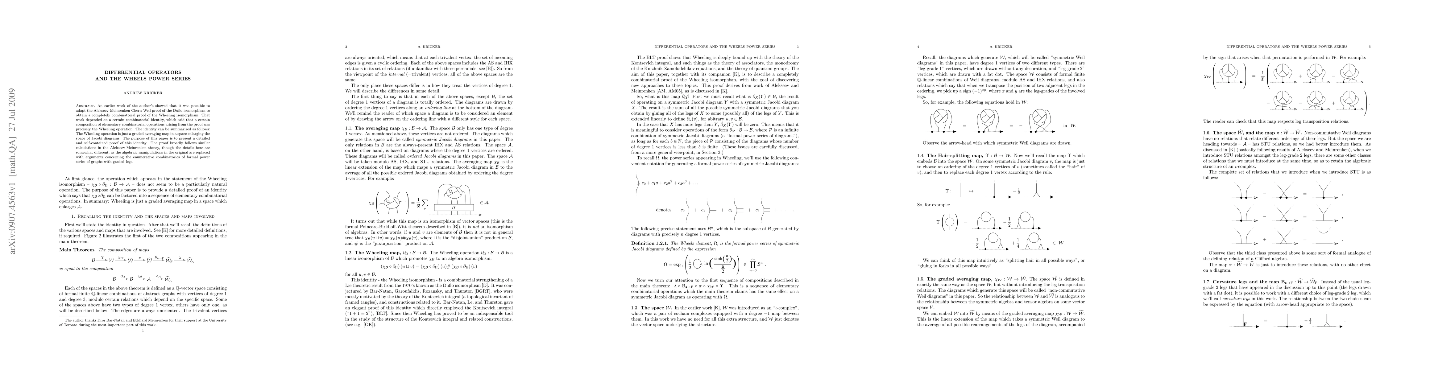 An earlier work of the author's showed that it was possible to adapt the Alekseev-Meinrenken Chern-Weil proof of the Duflo isomorphism to obtain a completely combinatorial proof of the Wheeling isomorphism. That work depended on a certain combinatorial identity, which said that a certain composition of elementary combinatorial operations arising from the proof was precisely the Wheeling operation. The identity can be summarized as follows: The Wheeling operation is just a graded averaging map in a space enlarging the space of Jacobi diagrams. The purpose of this paper is to present a detailed and self-contained proof of this identity. The proof broadly follows similar calculations in the Alekseev-Meinrenken theory, though the details here are somewhat different, as the algebraic manipulations in the original are replaced with arguments concerning the enumerative combinatorics of formal power series of graphs with graded legs.