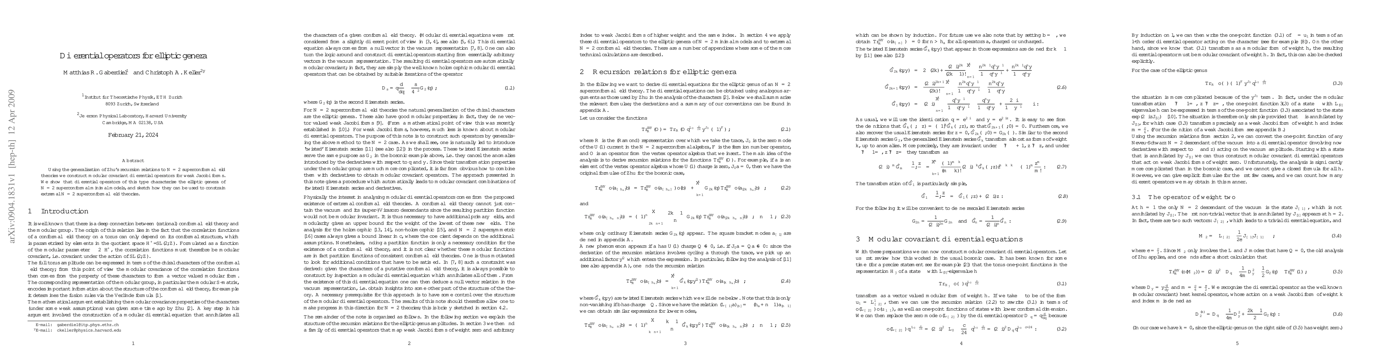 Using the generalisation of Zhu's recursion relations to N=2 superconformal field theories we construct modular covariant differential operators for weak Jacobi forms. We show that differential operators of this type characterise the elliptic genera of N=2 superconformal minimal models, and sketch how they can be used to constrain extremal N=2 superconformal field theories.