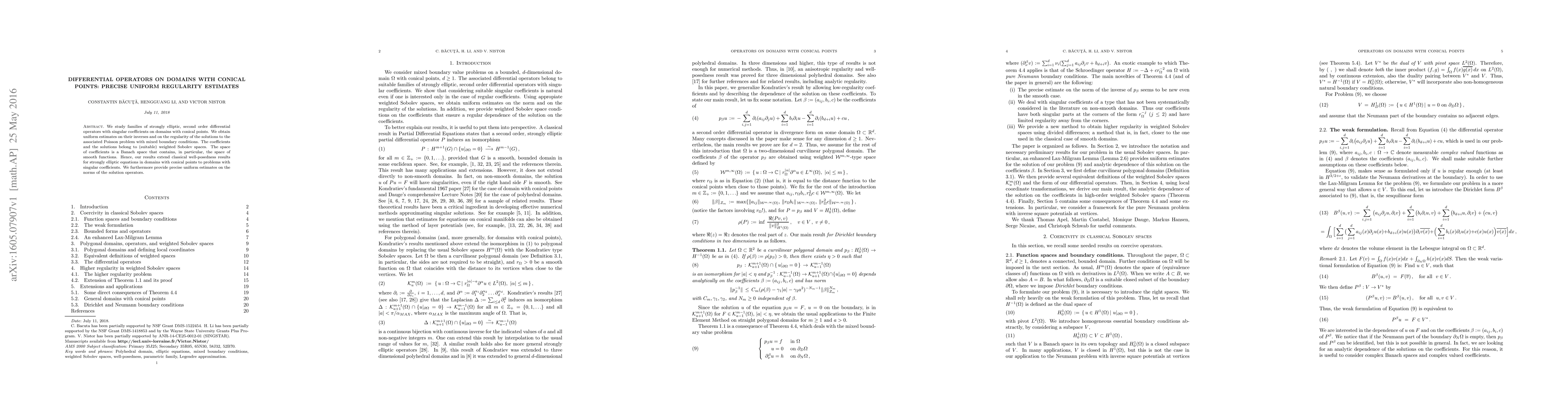 This paper investigates strongly elliptic differential operators with singular coefficients on domains featuring conical points, establishing uniform regularity estimates for their inverses and solutions to the Poisson problem. The results extend classical well-posedness to include singular coefficients and provide precise uniform bounds on solution operator norms.
