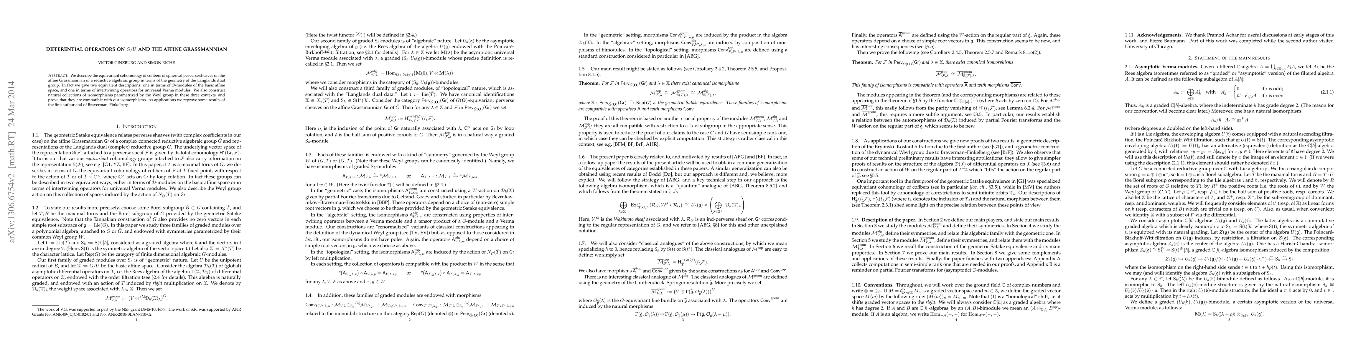 We describe the equivariant cohomology of cofibers of spherical perverse sheaves on the affine Grassmannian of a reductive algebraic group in terms of the geometry of the Langlands dual group. In fact we give two equivalent descriptions: one in terms of D-modules of the basic affine space, and one in terms of intertwining operators for universal Verma modules. We also construct natural collections of isomorphisms parametrized by the Weyl group in these three contexts, and prove that they are compatible with our isomorphisms. As applications we reprove some results of the first author and of Braverman-Finkelberg.