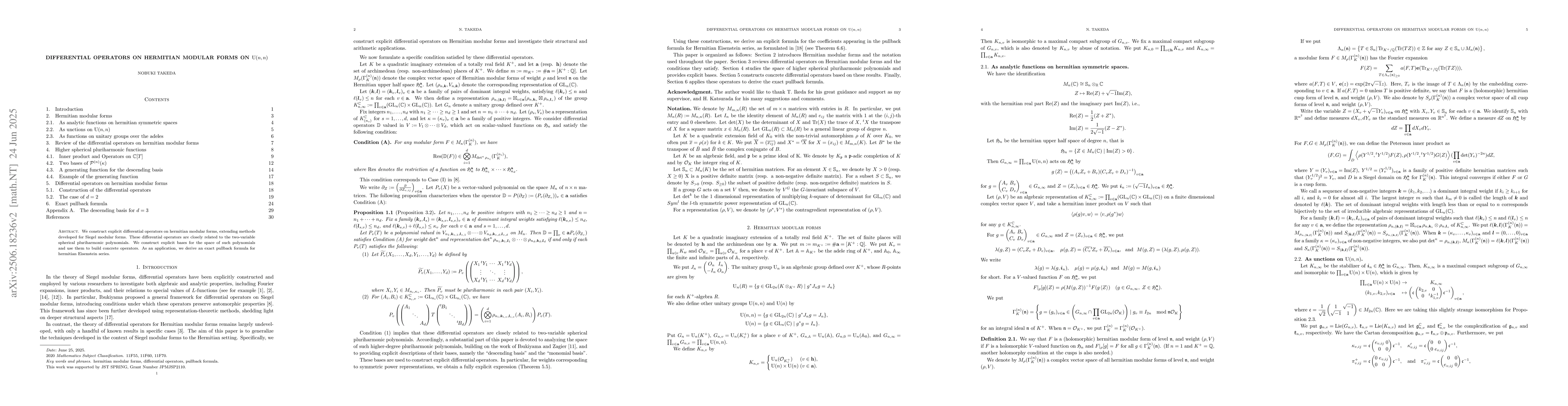 We construct explicit differential operators on hermitian modular forms, extending methods developed for Siegel modular forms. These differential operators are closely related to the two-variable spherical pluriharmonic polynomials. We construct explicit bases for the space of such polynomials and use them to build concrete operators. As an application, we derive an exact pullback formula for hermitian Eisenstein series.