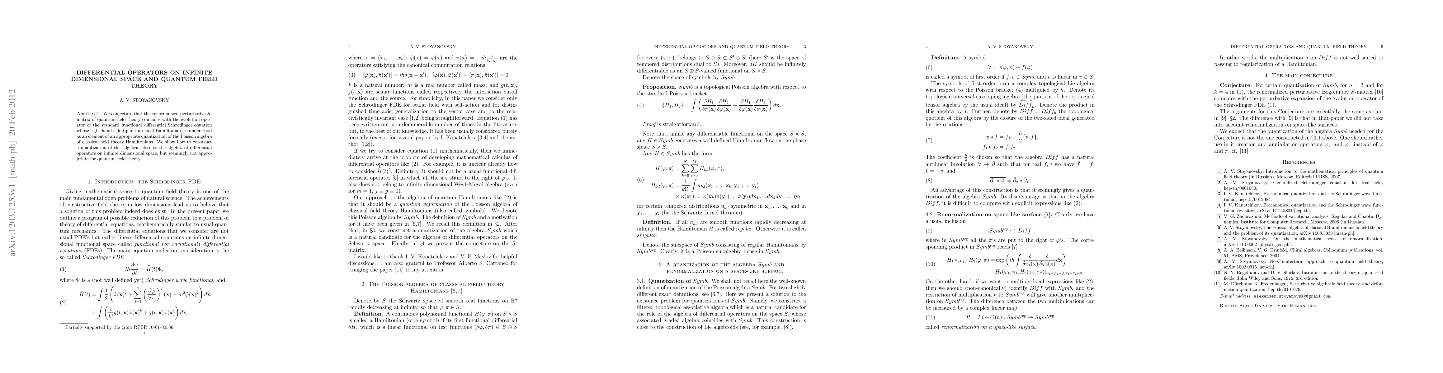 We conjecture that the renormalized perturbative $S$-matrix of quantum field theory coincides with the evolution operator of the standard functional differential Schrodinger equation whose right hand side (quantum local Hamiltonian) is understood as an element of an appropriate quantization of the Poisson algebra of classical field theory Hamiltonians. We show how to construct a quantization of this algebra, close to the algebra of differential operators on infinite dimensional space, but seemingly not appropriate for quantum field theory.