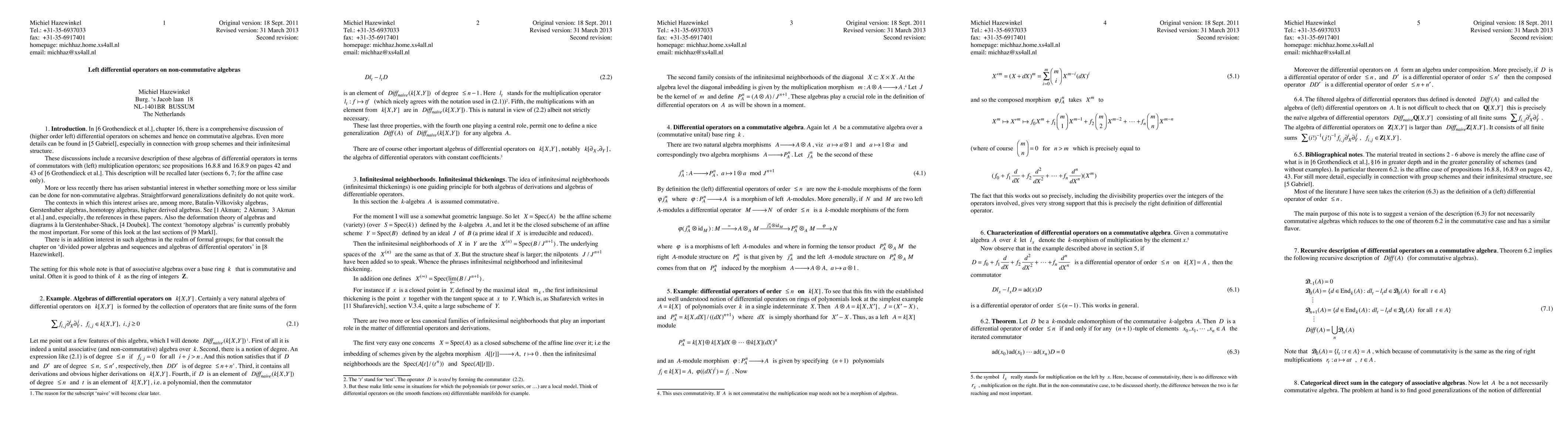 Summary: This paper constructs differential operators on non-commutative algebras, extending the well-known framework for commutative algebras to a non-commutative setting. The focus is on developing a similar structure for higher-order left differential operators in this context.