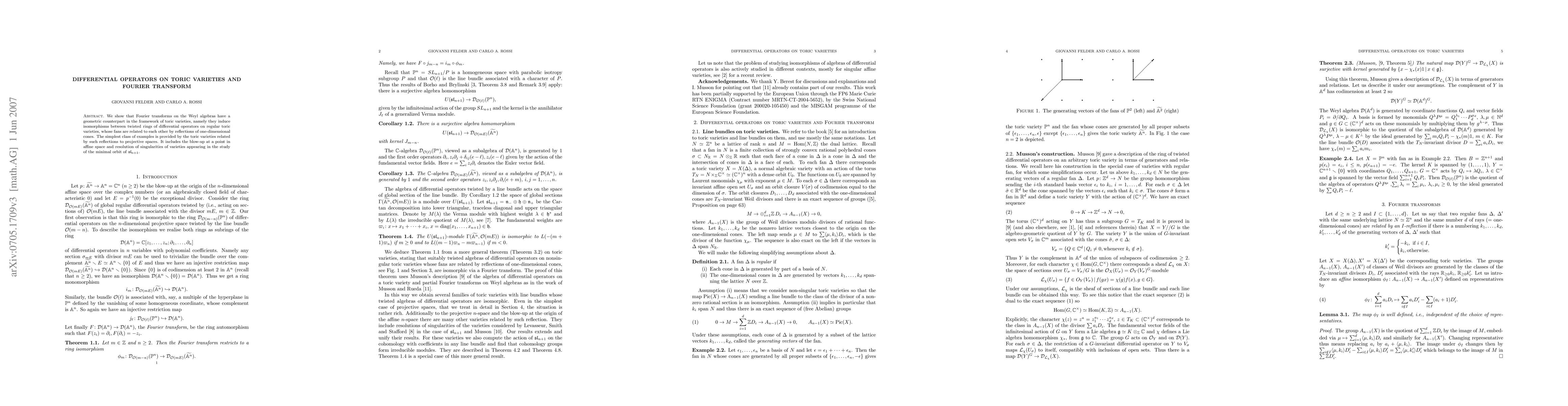 We show that Fourier transforms on the Weyl algebras have a geometric counterpart in the framework of toric varieties, namely they induce isomorphisms between twisted rings of differential operators on regular toric varieties, whose fans are related to each other by reflections of one-dimensional cones. The simplest class of examples is provided by the toric varieties related by such reflections to projective spaces. It includes the blow-up at a point in affine space and resolution of singularities of varieties appearing in the study of the minimal orbit of sl(n+1).