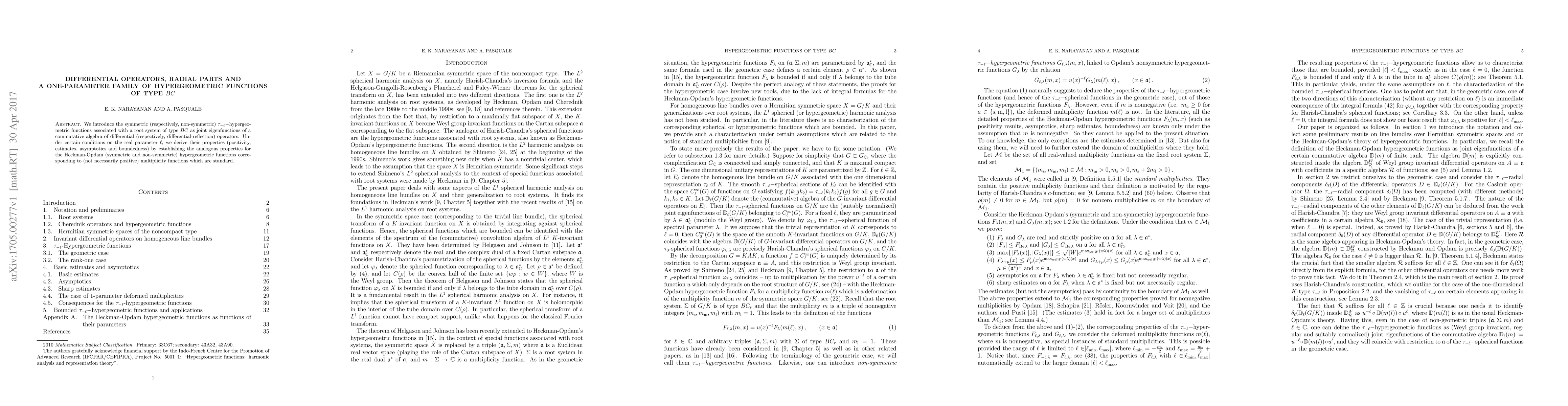 This paper introduces $\tau_{-\ell}$-hypergeometric functions for type BC root systems, showing they are eigenfunctions of a commutative algebra of differential operators. It derives properties of these functions by leveraging analogous properties of Heckman-Opdam hypergeometric functions under specific conditions on $\ell$.