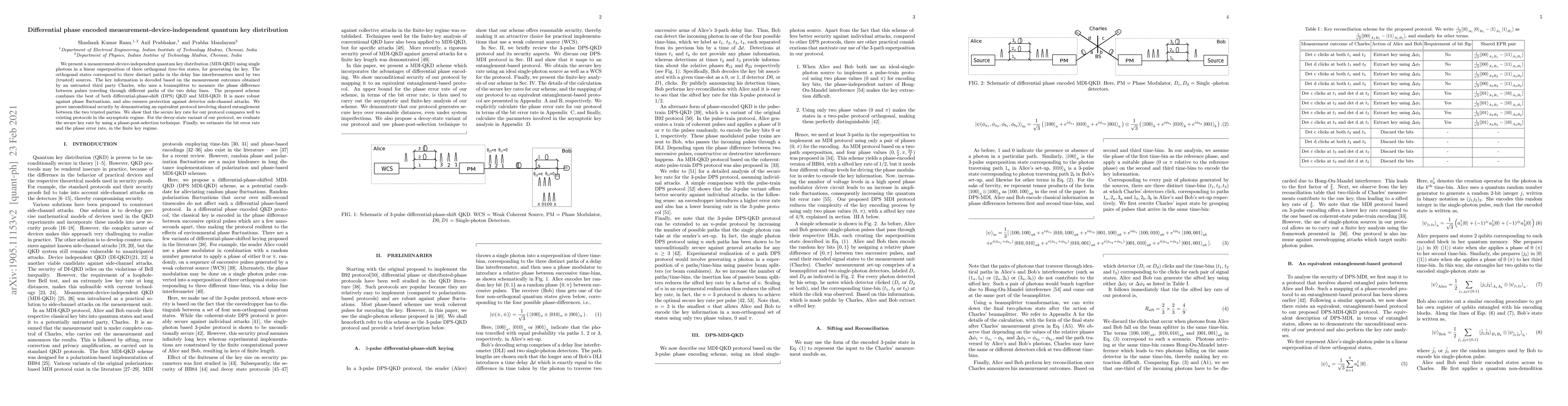 We present a measurement-device-independent quantum key distribution (MDI-QKD) using single photons in a linear superposition of three orthogonal time-bin states, for generating the key. The orthogonal states correspond to three distinct paths in the delay line interferometers used by two (trusted) sources. The key information is decoded based on the measurement outcomes obtained by an untrusted third party Charles, who uses a beamsplitter to measure the phase difference between pulses traveling through different paths of the two delay lines. The proposed scheme combines the best of both differential-phase-shift (DPS) QKD and MDI-QKD. It is more robust against phase fluctuations, and also ensures protection against detector side-channel attacks. We prove unconditional security by demonstrating an equivalent protocol involving shared entanglement between the two trusted parties. We show that the secure key rate for our protocol compares well to existing protocols in the asymptotic regime. For the decoy-state variant of our protocol, we evaluate the secure key rate by using a phase-post-selection technique. Finally, we estimate the bit error rate and the phase error rate, in the finite key regime.