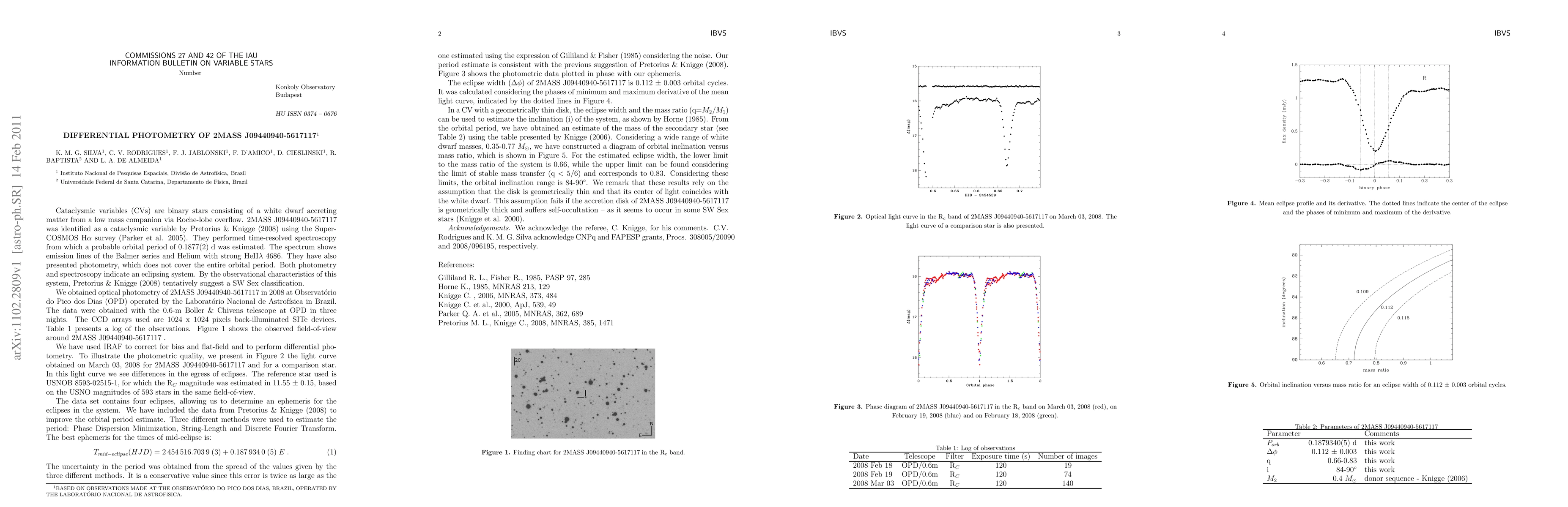 2MASS J09440940-5617117 was identified as a cataclysmic variable in 2007 by its spectrum. In this article we present optical differential photometry in the Rc band obtained using the 0.6-m telescope at Observatorio do Pico dos Dias/Brazil. The complete light curves confirm the presence of a deep eclipse. We derive an orbital period of 0.1879340(5) d. The eclipse has a width of 0.112 +- 0.003 orbital cycles.