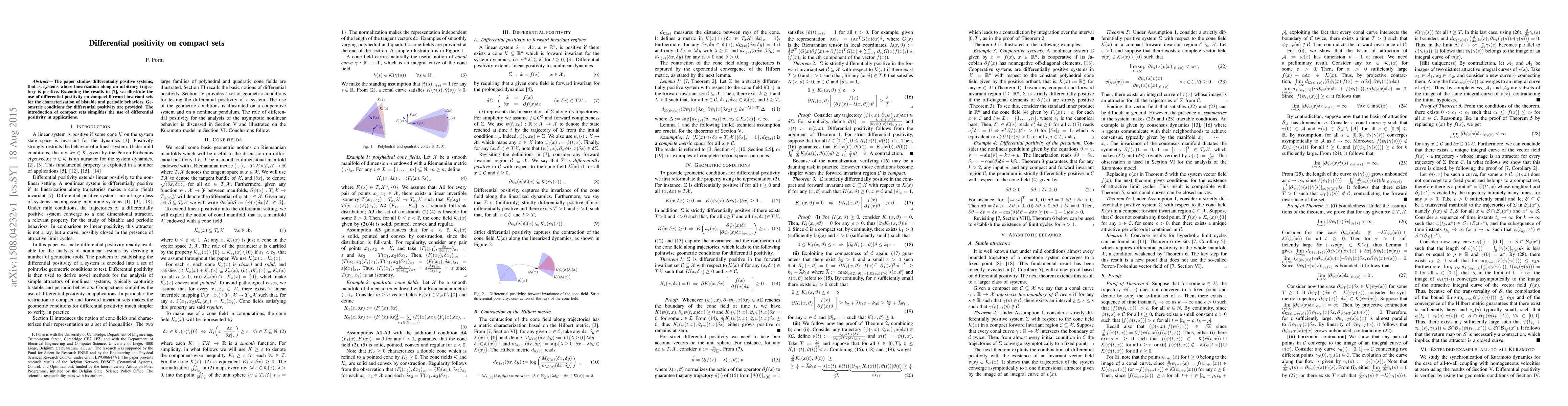 This paper investigates differentially positive systems, focusing on their linearization properties along trajectories, and explores the use of differential positivity on compact sets for characterizing bistable and periodic behaviors. It provides geometric conditions for differential positivity and highlights the simplifications this approach brings to applications.