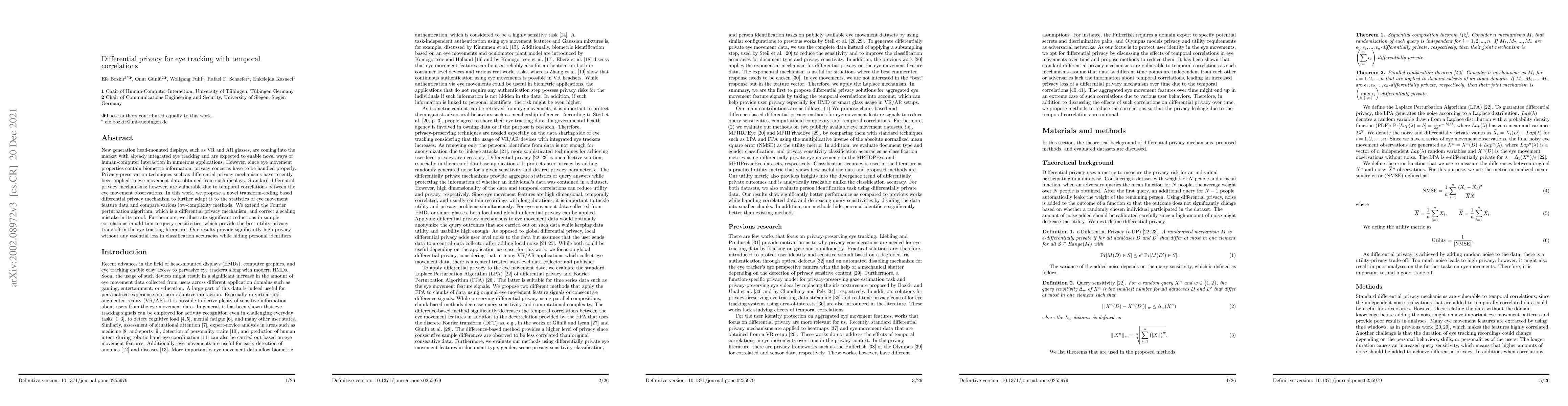 This paper proposes a novel transform-coding based differential privacy mechanism to protect eye movement data from head-mounted displays, addressing vulnerabilities due to temporal correlations. The extended Fourier perturbation algorithm shows significant reductions in sample correlations and maintains high classification accuracy, providing a strong utility-privacy trade-off.