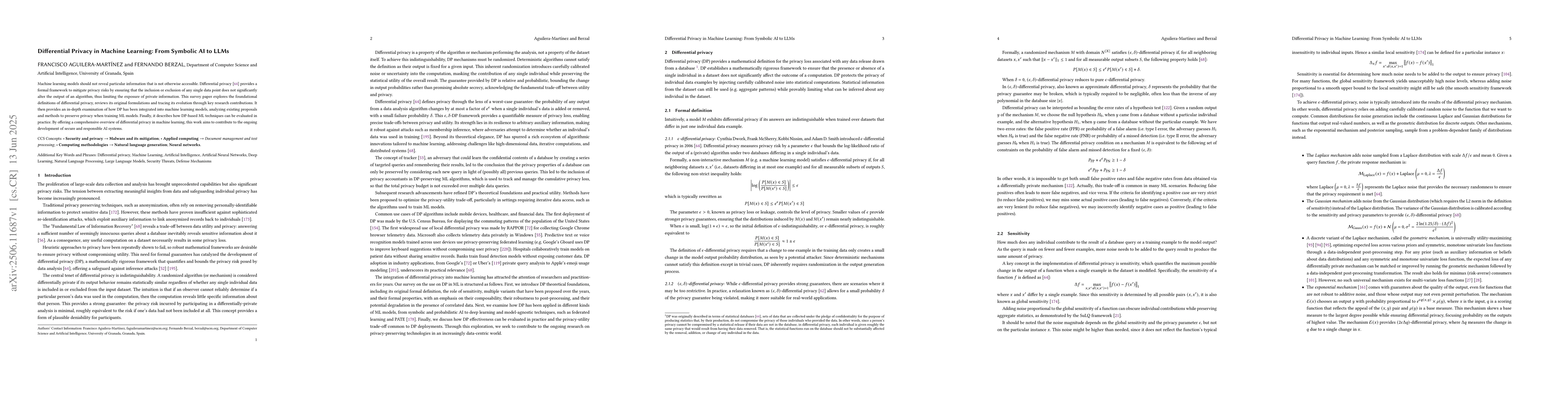 This paper surveys the concept of differential privacy in machine learning, detailing its definitions, evolution, and integration into models to protect individual data. It also examines practical evaluation methods and discusses broader implications, including benefits, applications, and challenges, aiming to advance secure and responsible AI development.