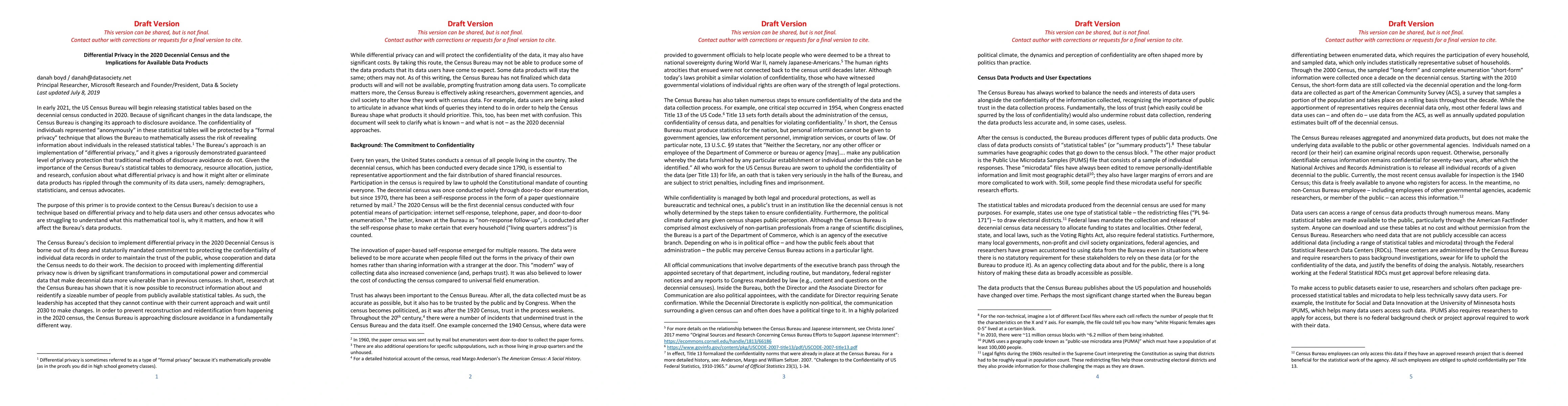 This paper explains the Census Bureau's adoption of differential privacy for the 2020 Decennial Census to enhance data protection, contrasting it with traditional methods. It aims to clarify how this new approach may impact the availability and utility of census data products for users like demographers and statisticians.