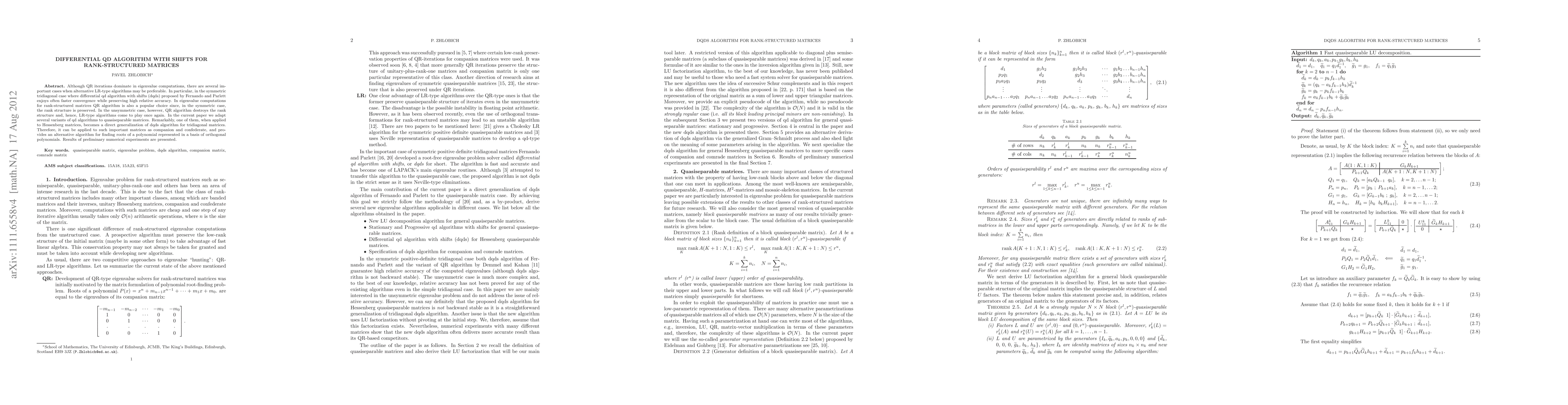 Although QR iterations dominate in eigenvalue computations, there are several important cases when alternative LR-type algorithms may be preferable. In particular, in the symmetric tridiagonal case where differential qd algorithm with shifts (dqds) proposed by Fernando and Parlett enjoys often faster convergence while preserving high relative accuracy (that is not guaranteed in QR algorithm). In eigenvalue computations for rank-structured matrices QR algorithm is also a popular choice since, in the symmetric case, the rank structure is preserved. In the unsymmetric case, however, QR algorithm destroys the rank structure and, hence, LR-type algorithms come to play once again. In the current paper we discover several variants of qd algorithms for quasiseparable matrices. Remarkably, one of them, when applied to Hessenberg matrices becomes a direct generalization of dqds algorithm for tridiagonal matrices. Therefore, it can be applied to such important matrices as companion and confederate, and provides an alternative algorithm for finding roots of a polynomial represented in the basis of orthogonal polynomials. Results of preliminary numerical experiments are presented.